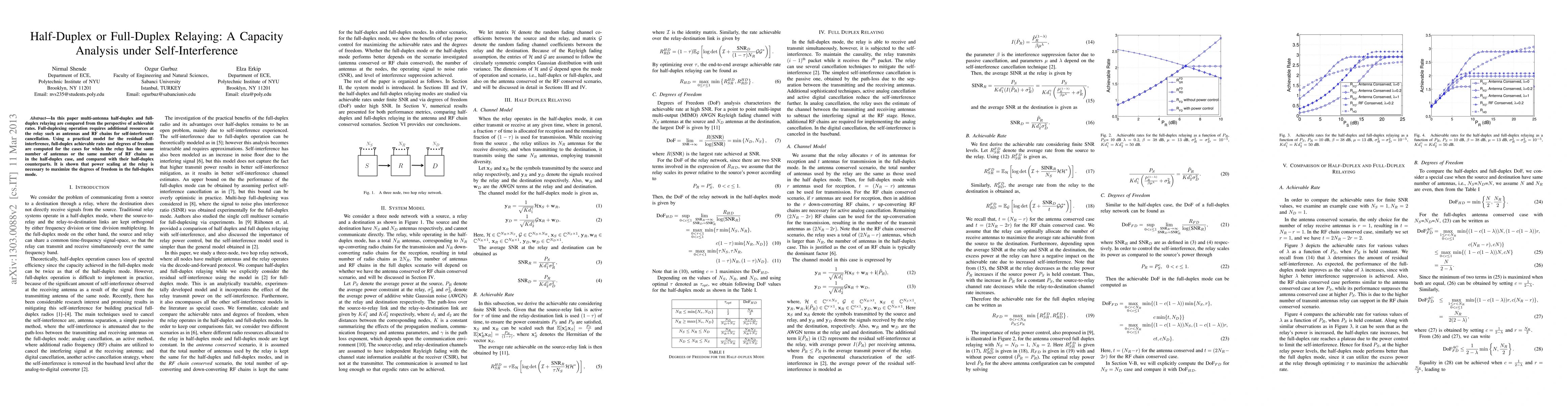This paper compares achievable rates of multi-antenna half-duplex and full-duplex relaying, highlighting the need for additional resources in full-duplexing to manage self-interference. It concludes that power scaling at the relay is essential to maximize degrees of freedom in full-duplex mode.