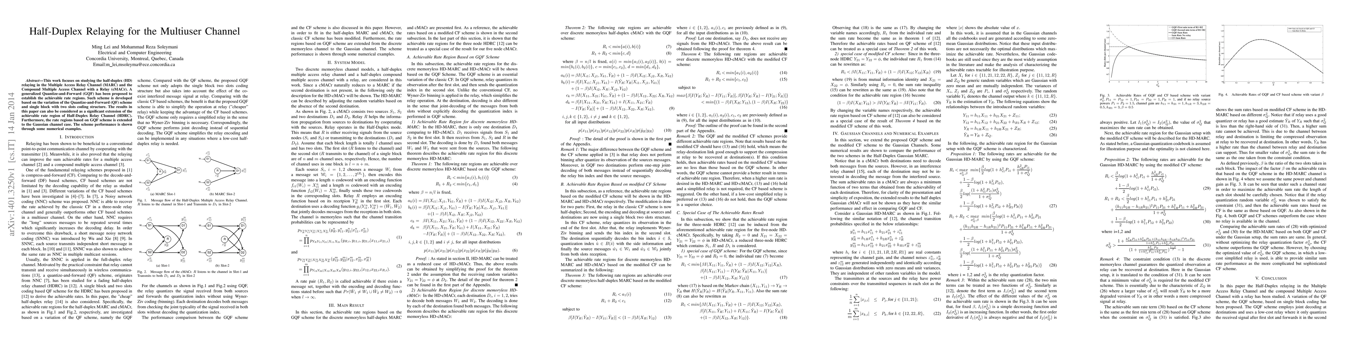 This paper investigates half-duplex relaying in multiuser channels, proposing a generalized Quantize-and-Forward scheme for the Multiple Access Relay Channel and the Compound Multiple Access Channel with a Relay. Numerical results demonstrate the extended achievable rate regions for the Half-Duplex Relay Channel.