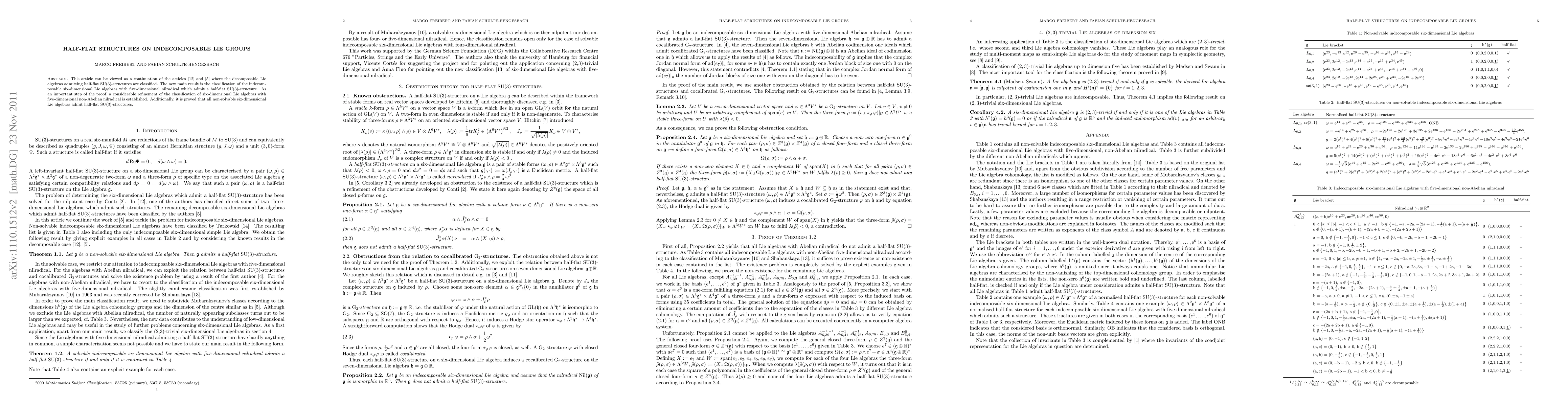 The paper presents a detailed classification of certain Lie algebras and their half-flat structures, along with a refined classification of six-dimensional Lie algebras.
