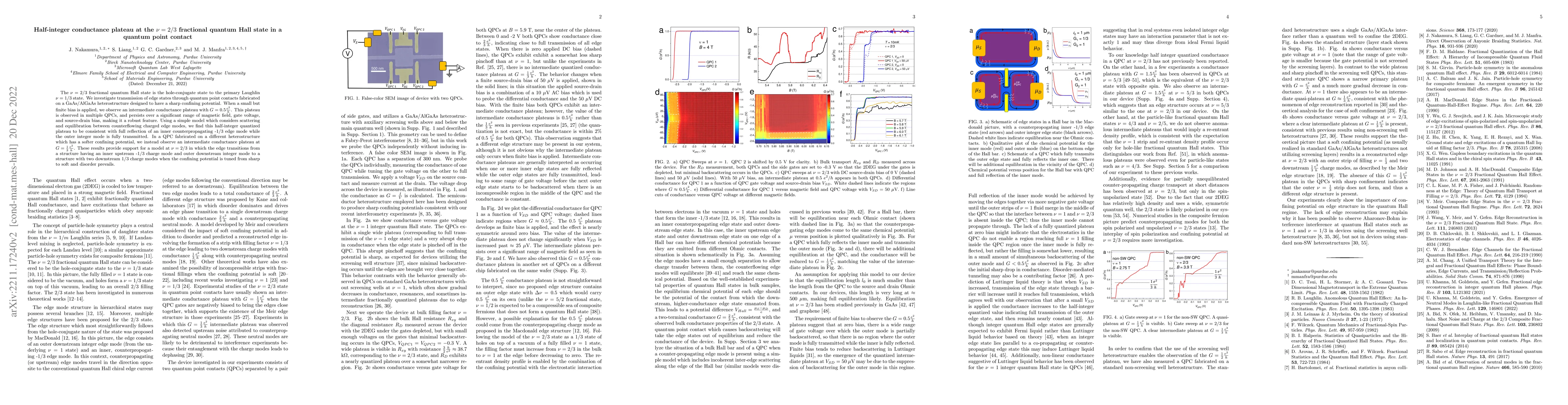 This study observes a half-integer conductance plateau at $G = 0.5 \frac{e^2}{h}$ in quantum point contacts (QPCs) within the $\nu = 2/3$ fractional quantum Hall state, indicating full reflection of a -1/3 charge mode and full transmission of an integer mode. The robustness of this plateau supports a model of edge transitions in the $\nu = 2/3$ state.