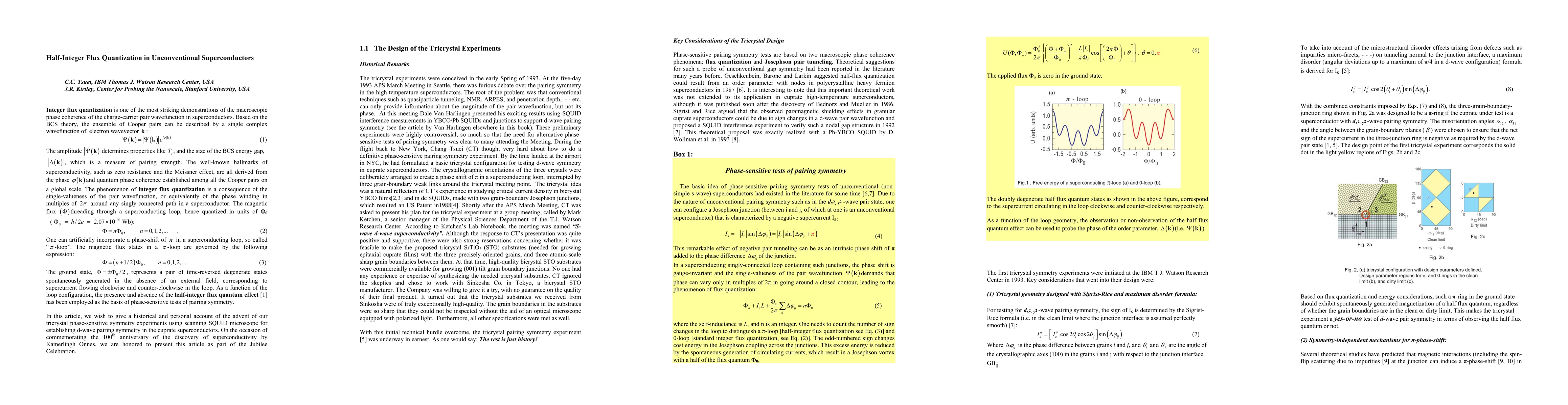Researchers investigate unconventional superconductors using a scanning SQUID microscope to determine d-wave pairing symmetry in cuprate superconductors, with key findings including half-integer flux quantization.