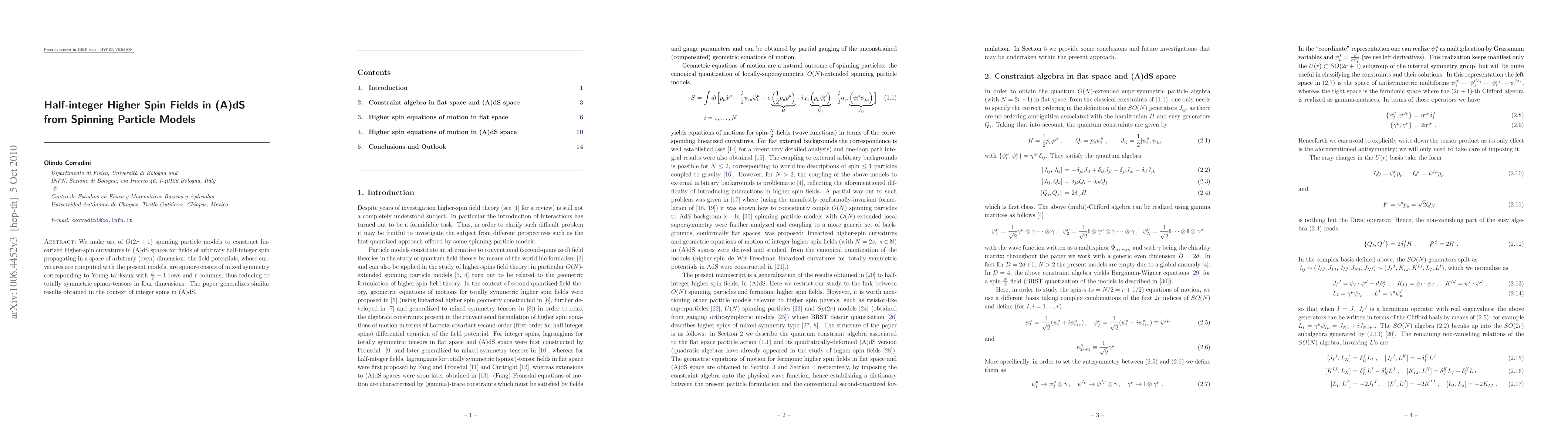 We make use of O(2r+1) spinning particle models to construct linearized higher-spin curvatures in (A)dS spaces for fields of arbitrary half-integer spin propagating in a space of arbitrary (even) dimension: the field potentials, whose curvatures are computed with the present models, are spinor-tensors of mixed symmetry corresponding to Young tableaux with D/2 - 1 rows and r columns, thus reducing to totally symmetric spinor-tensors in four dimensions. The paper generalizes similar results obtained in the context of integer spins in (A)dS.