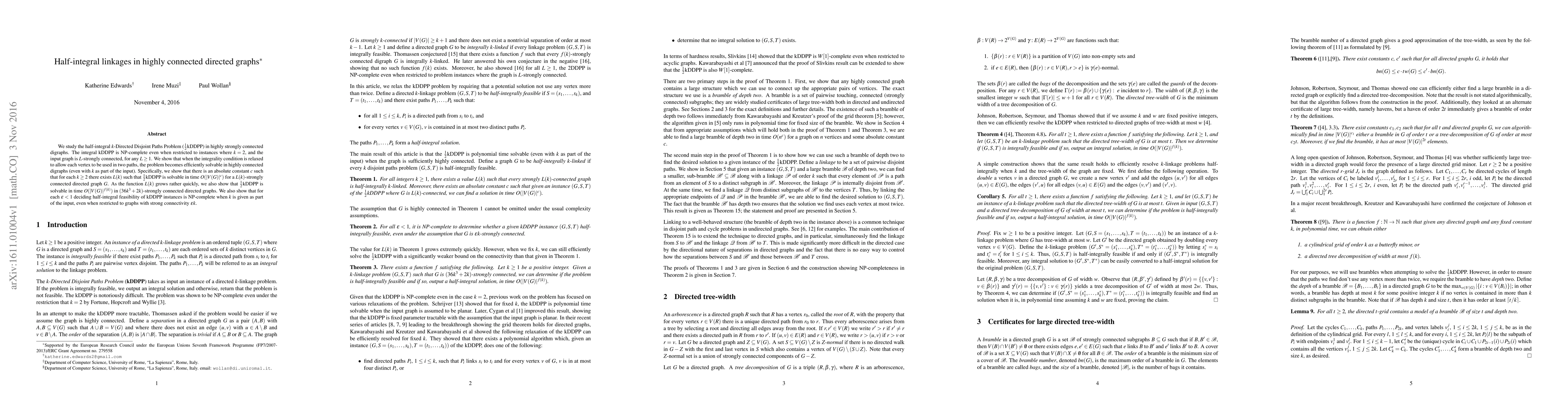 This paper investigates the half-integral $k$-Directed Disjoint Paths Problem in highly connected directed graphs, demonstrating that it becomes efficiently solvable when allowing each vertex to be used in two paths. The authors provide algorithms for solving the problem in specific classes of strongly connected digraphs with polynomial time complexity.