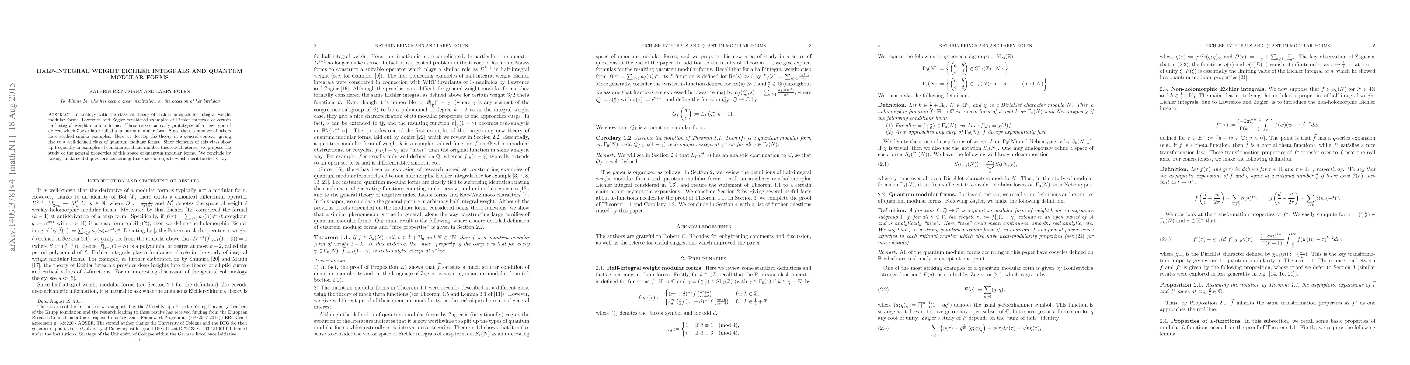This paper develops a general theory for half-integral weight Eichler integrals, establishing a well-defined class of quantum modular forms that frequently appear in combinatorial and number theoretical contexts. The authors propose further study into the general properties of this space and outline fundamental questions that remain to be explored.