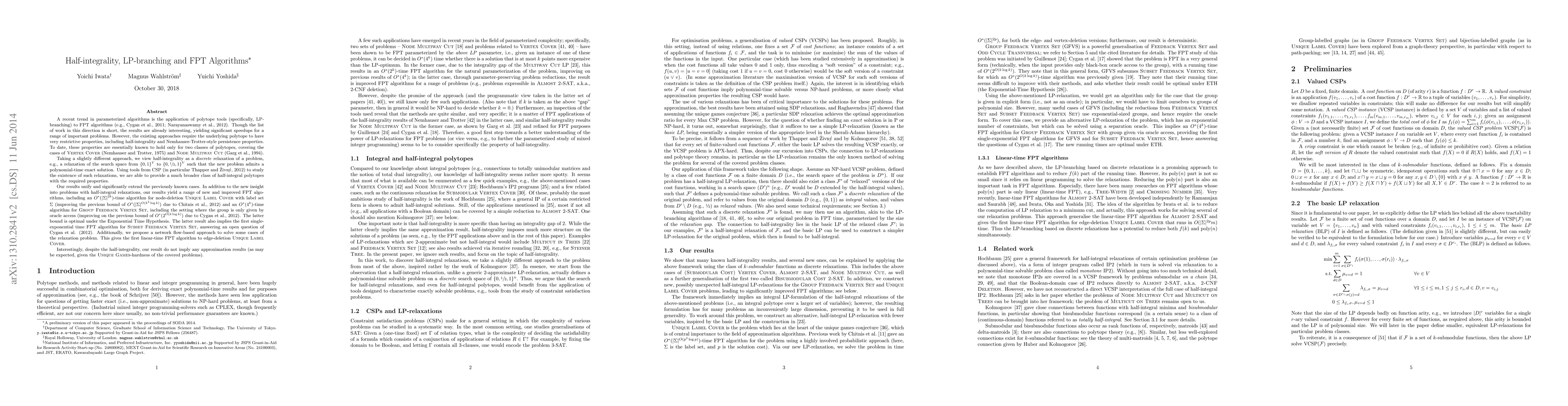 A recent trend in parameterized algorithms is the application of polytope tools (specifically, LP-branching) to FPT algorithms (e.g., Cygan et al., 2011; Narayanaswamy et al., 2012). However, although interesting results have been achieved, the methods require the underlying polytope to have very restrictive properties (half-integrality and persistence), which are known only for few problems (essentially Vertex Cover (Nemhauser and Trotter, 1975) and Node Multiway Cut (Garg et al., 1994)). Taking a slightly different approach, we view half-integrality as a \emph{discrete} relaxation of a problem, e.g., a relaxation of the search space from $\{0,1\}^V$ to $\{0,1/2,1\}^V$ such that the new problem admits a polynomial-time exact solution. Using tools from CSP (in particular Thapper and \v{Z}ivn\'y, 2012) to study the existence of such relaxations, we provide a much broader class of half-integral polytopes with the required properties, unifying and extending previously known cases. In addition to the insight into problems with half-integral relaxations, our results yield a range of new and improved FPT algorithms, including an $O^*(|\Sigma|^{2k})$-time algorithm for node-deletion Unique Label Cover with label set $\Sigma$ and an $O^*(4^k)$-time algorithm for Group Feedback Vertex Set, including the setting where the group is only given by oracle access. All these significantly improve on previous results. The latter result also implies the first single-exponential time FPT algorithm for Subset Feedback Vertex Set, answering an open question of Cygan et al. (2012). Additionally, we propose a network flow-based approach to solve some cases of the relaxation problem. This gives the first linear-time FPT algorithm to edge-deletion Unique Label Cover.