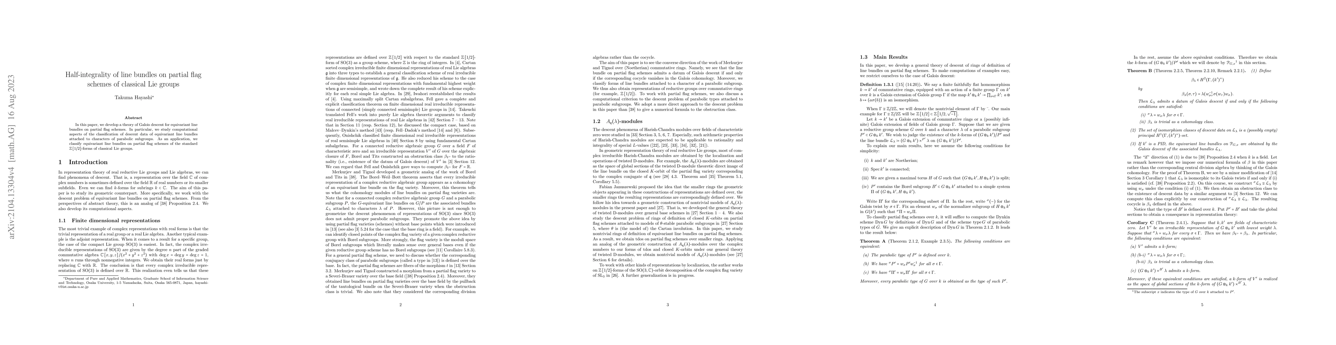 This paper develops a Galois descent theory for equivariant line bundles on partial flag schemes, focusing on classifying such bundles via descent data for characters of parabolic subgroups. It concludes with a classification of equivariant line bundles on the $\mathbb{Z}\left[1/2\right]$-forms of classical Lie groups' partial flag schemes.