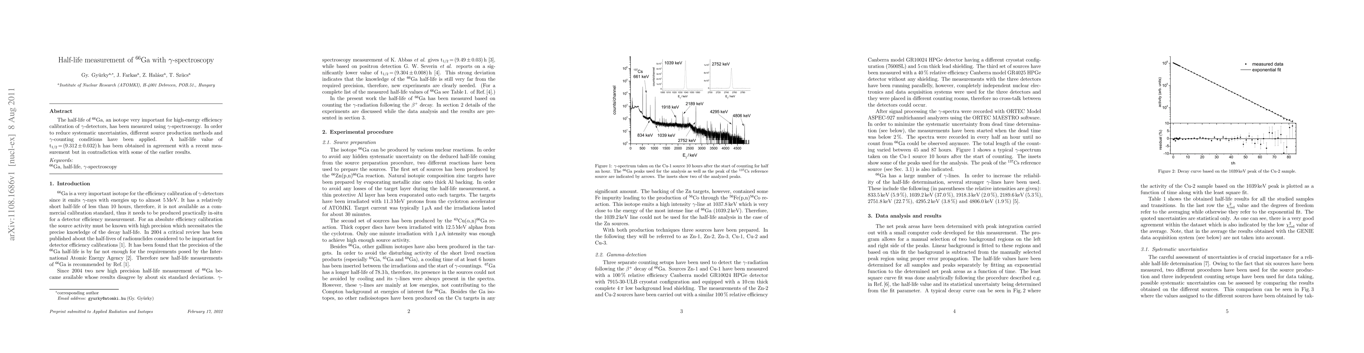 A detailed description of the research methodology used to determine the half-life of 66Ga
