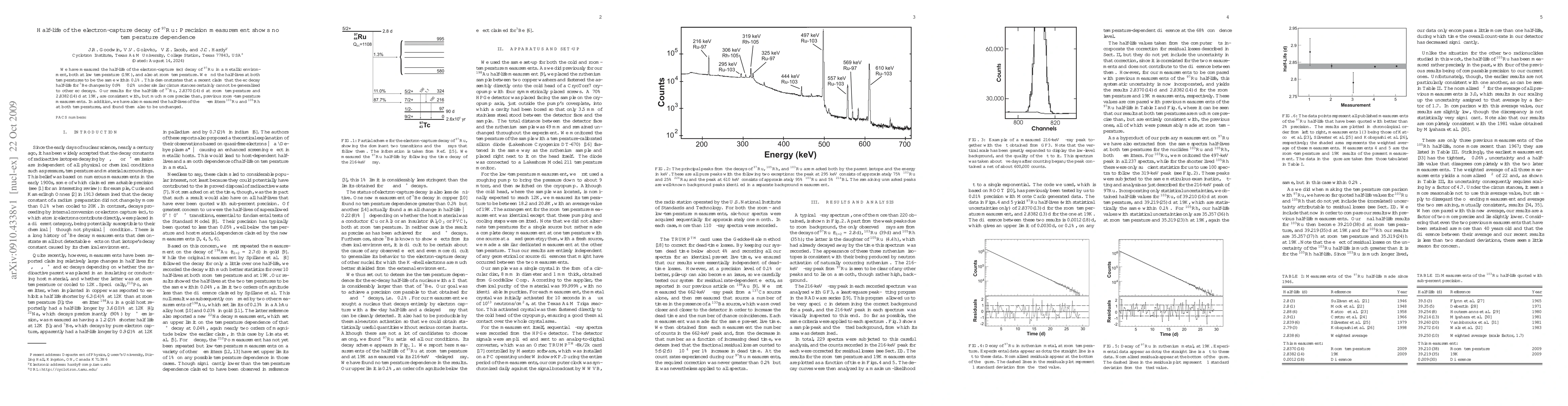 We have measured the half-life of the electron-capture (ec) decay of 97Ru in a metallic environment, both at low temperature (19K), and also at room temperature. We find the half-lives at both temperatures to be the same within 0.1%. This demonstrates that a recent claim that the ec decay half-life for 7Be changes by $0.9% +/- 0.2% under similar circumstances certainly cannot be generalized to other ec decays. Our results for the half-life of 97Ru, 2.8370(14)d at room temperature and 2.8382(14)d at 19K, are consistent with, but much more precise than, previous room-temperature measurements. In addition, we have also measured the half-lives of the beta-emitters 103Ru and 105Rh at both temperatures, and found them also to be unchanged.