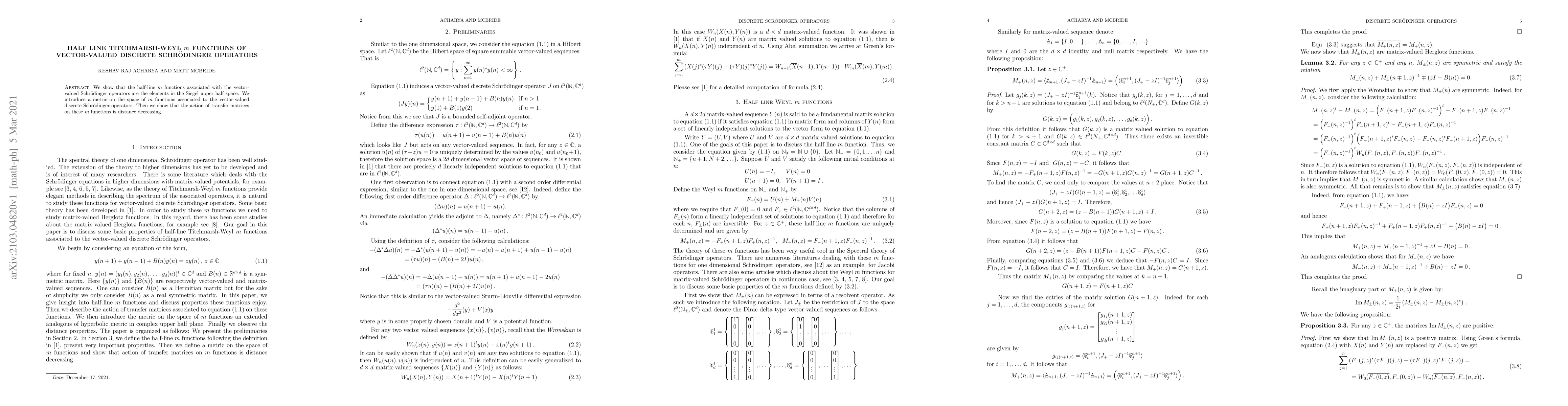 We show that the half-line $m$ functions associated with the vector-valued Schrodinger operators are the elements in the Siegel upper half space. We introduce a metric on the space of $m$ functions associated to the vector-valued discrete Schrodinger operators. Then we show that the action of transfer matrices on these $m$ functions is distance decreasing.