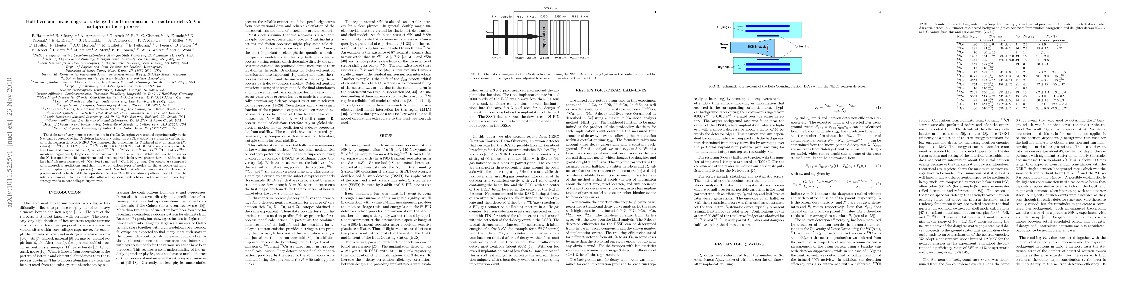 This research experimentally measures the branchings for β-delayed neutron emission and half-lives for neutron-rich Co-Cu isotopes, providing new data for 74Co, 75-77Ni, and 77-79Cu. The findings improve the classical r-process model's ability to reproduce the A = 78-80 abundance pattern and influence models for neutrino-driven supernovae.
