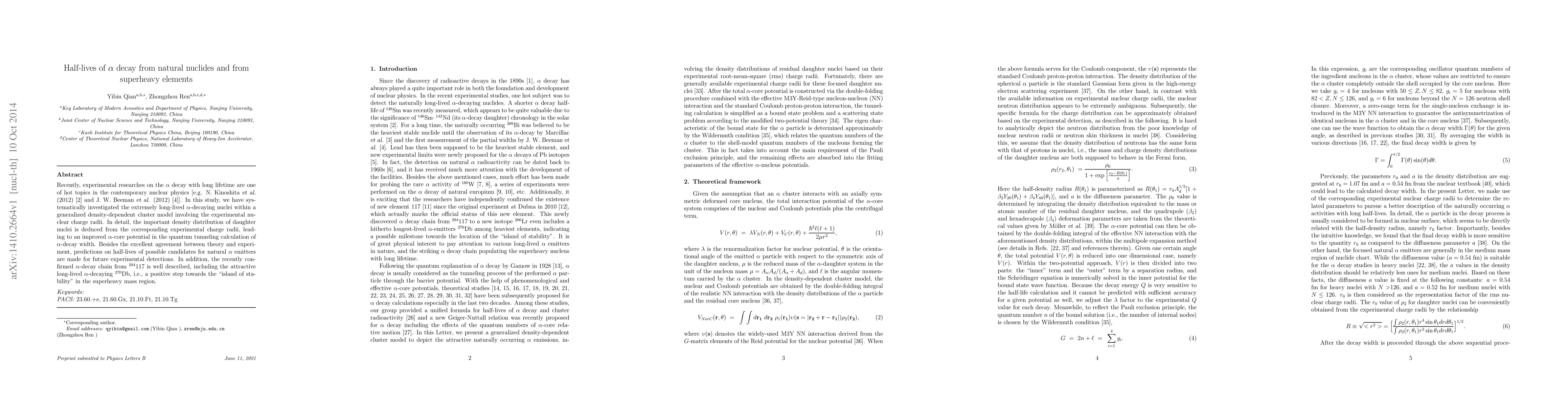 Researchers used a density-dependent cluster model to study extremely long-lived alpha decaying nuclei, predicting their half-lives and confirming an alpha-decay chain in superheavy elements.