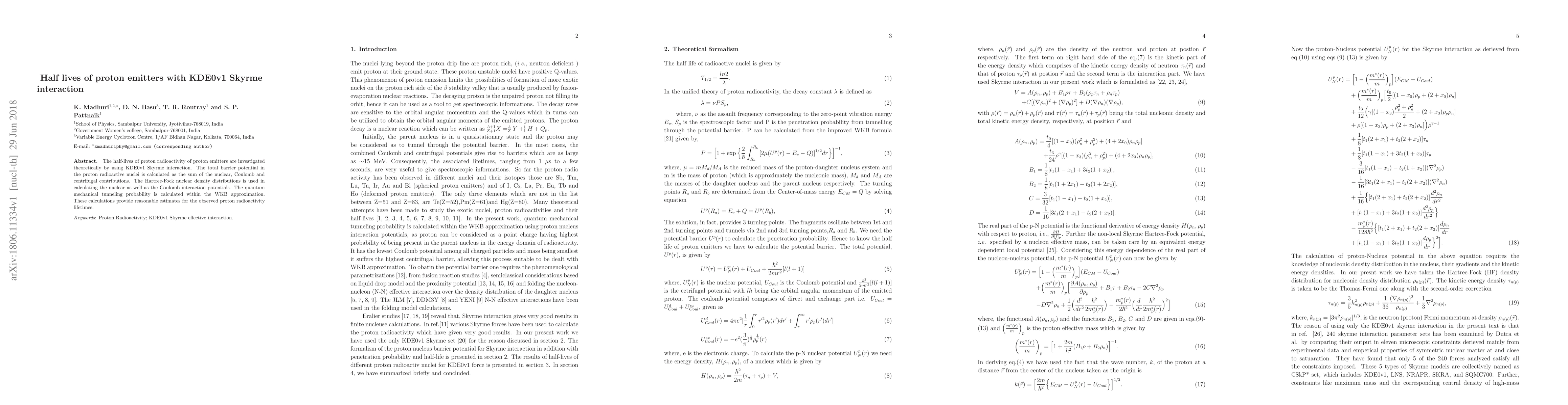 The study theoretically investigates the half-lives of proton radioactivity in proton emitters using the KDE0v1 Skyrme interaction. It calculates the total barrier potential in proton radioactive nuclei by summing nuclear, Coulomb, and centrifugal contributions. The Hartree-Fock nuclear density distributions are employed for nuclear and Coulomb interaction potentials, with quantum mechanical tunneling probability calculated within the WKB approximation.