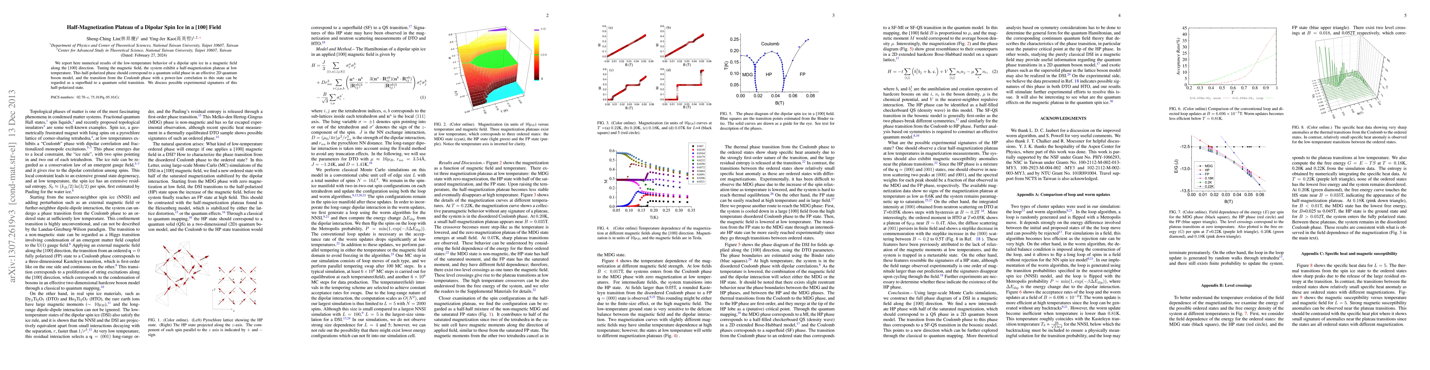 We report here numerical results of the low-temperature behavior of a dipolar spin ice in a magnetic field along the [100] direction. Tuning the magnetic field, the system exhibit a half-magnetization plateau at low temperature. This half-polarized phase should correspond to a quantum solid phase in an effective 2D quantum boson model, and the transition from the Coulomb phase with a power-law correlation to this state can be regarded as a superfluid to a quantum solid transition. We discuss possible experimental signatures of this half-polarized state.