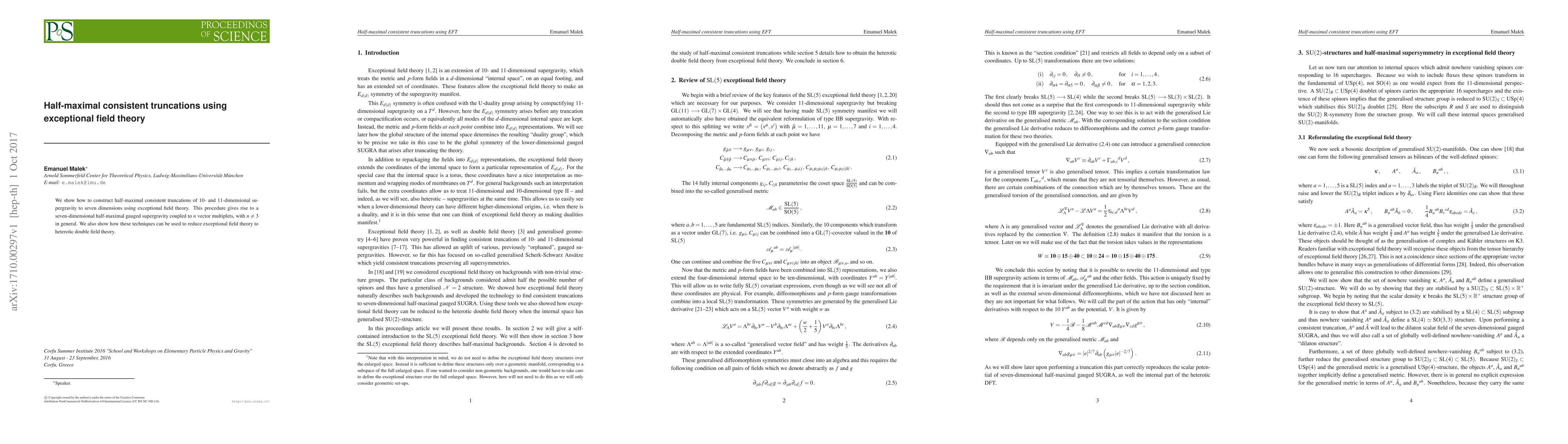 This paper constructs half-maximal consistent truncations of 10- and 11-dimensional supergravity to seven dimensions via exceptional field theory, resulting in a gauged supergravity with $n$ vector multiplets ($n \neq 3$ typically). It also demonstrates the reduction of exceptional field theory to heterotic double field theory.