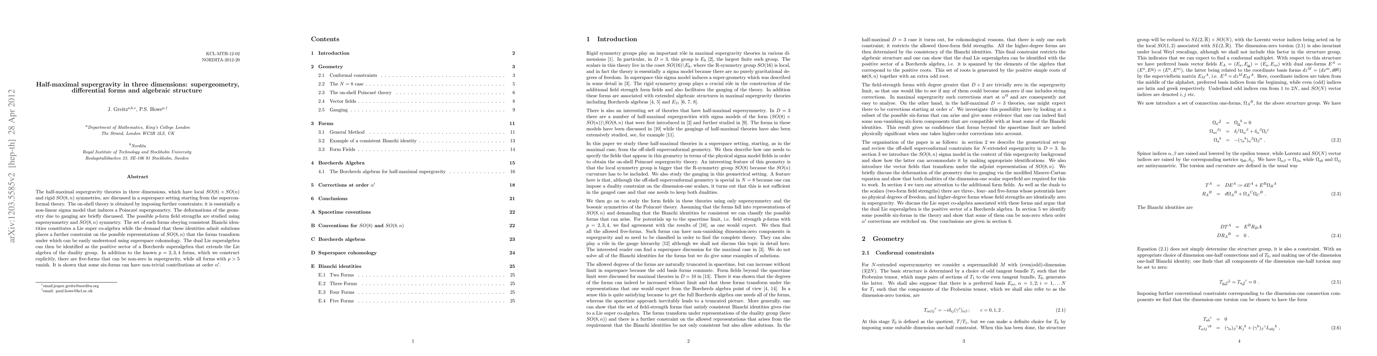 This paper explores the half-maximal supergravity in three dimensions, focusing on its supergeometry, differential forms, and algebraic structure. It reveals the presence of five-form field strengths in the theory, alongside the construction of dual Lie superalgebras linked to Borcherds superalgebras.