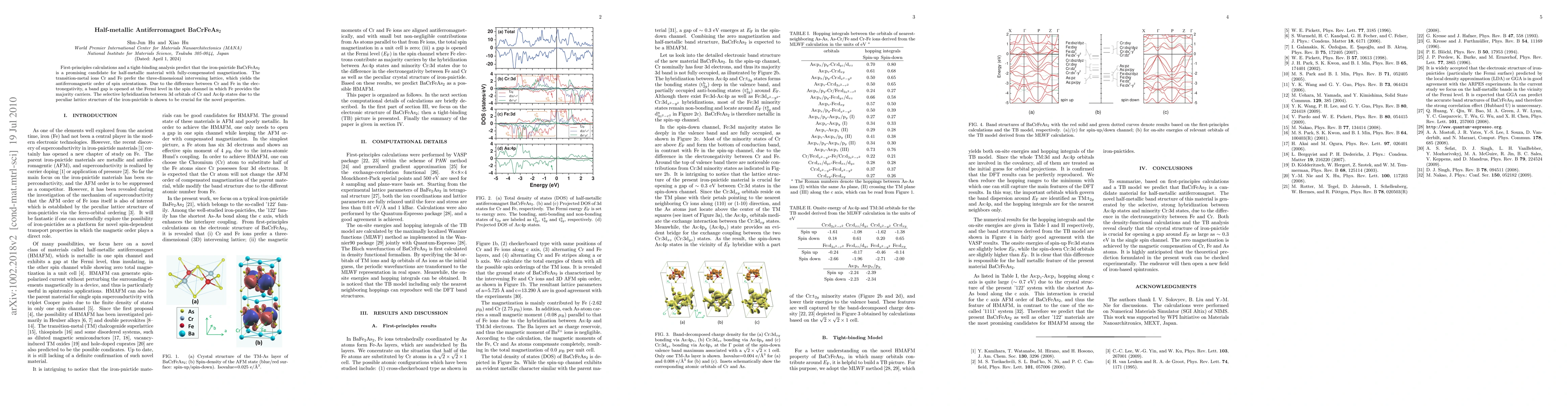 First-principles calculations and a tight-binding analysis predict that the iron-pnictide BaCrFeAs2 is a promising candidate for half-metallic material with fully-compensated magnetization. The transition-metal ions Cr and Fe prefer the three-dimensional intervening lattice, which yields the antiferromagnetic order of spin orientations. Due to the difference between Cr and Fe in the electronegativity, a band gap is opened at the Fermi level in the spin channel in which Fe provides the majority carriers. The selective hybridization between 3d orbitals of Cr and As:4p states due to the peculiar lattice structure of the iron-pnictide is shown to be crucial for the novel properties.