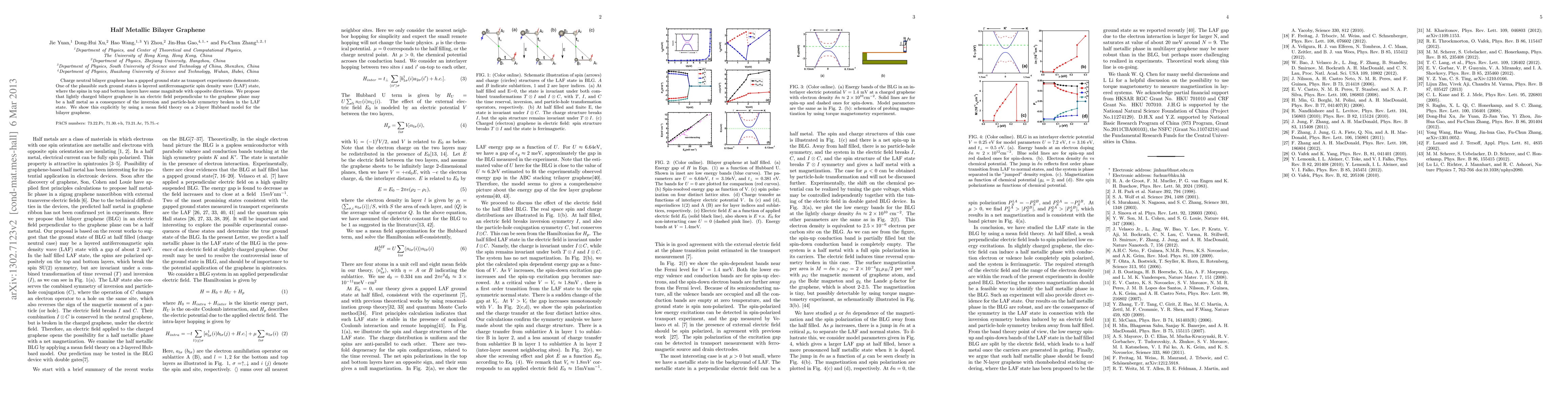 Research explores the potential of lightly charged bilayer graphene in an electric field to exhibit half-metallic properties due to the breaking of inversion and particle-hole symmetry in a layered antiferromagnetic spin density wave state, confirmed through mean field theory on a 2-layer Hubbard model.