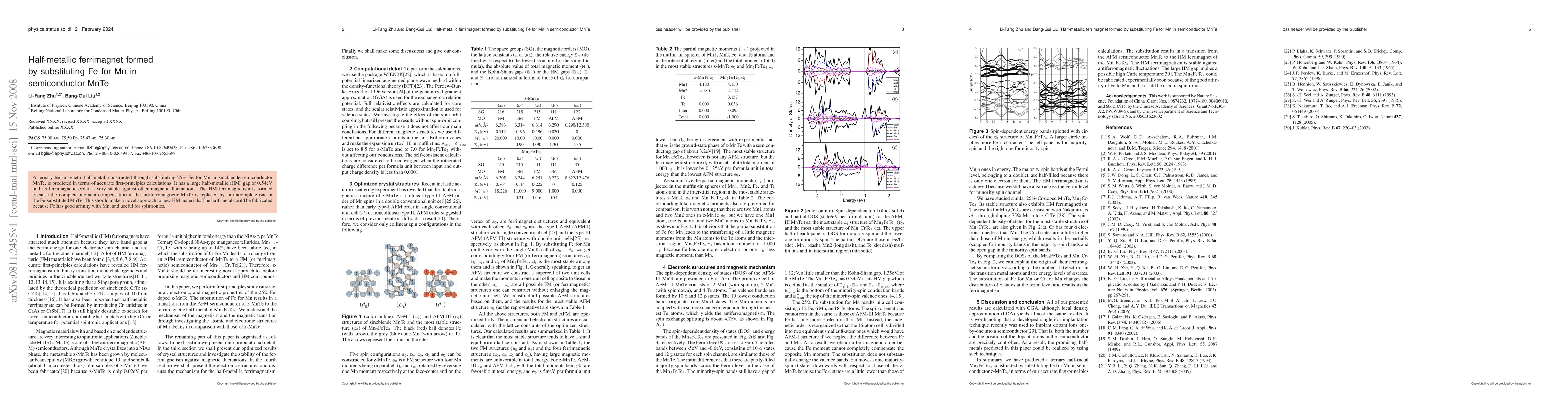 This paper reports the prediction of a ternary ferrimagnetic half-metal formed by substituting 25% Fe for Mn in MnTe, exhibiting a large half-metallic gap of 0.54 eV and stable ferrimagnetic order. The half-metallic property arises from incomplete moment compensation in Fe-substituted MnTe, offering potential for novel spintronics applications.
