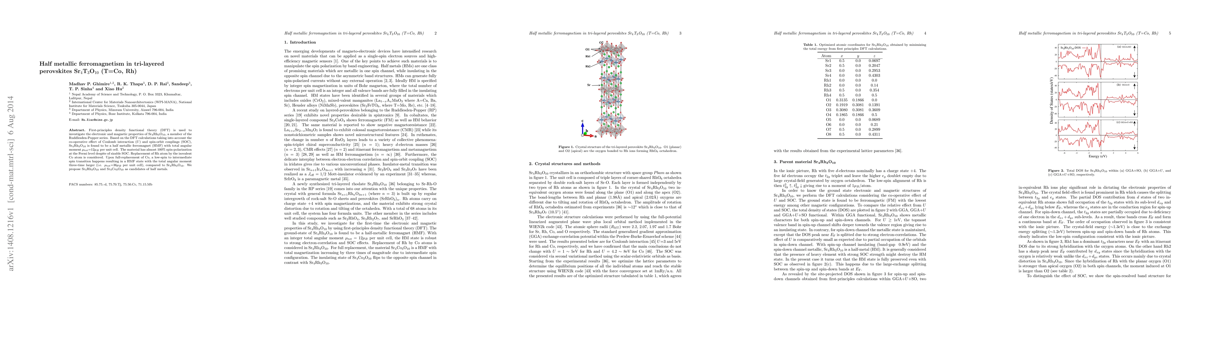 First-principles density functional theory (DFT) is used to investigate the electronic and magnetic properties of Sr$_4$Rh$_3$O$_{10}$, a member of the Ruddlesden-Popper series. Based on the DFT calculations taking into account the co-operative effect of Coulomb interaction ($U$) and spin-orbit couplings (SOC), Sr$_4$Rh$_3$O$_{10}$ is found to be a half metallic ferromagnet (HMF) with total angular moment $\mu_{\rm {tot}}$=12$\mu_B$ per unit cell. The material has almost 100$\%$ spin-polarization at the Fermi level despite of sizable SOC. Replacement of Rh atom by the isovalent Co atom is considered. Upon full-replacement of Co, a low-spin to intermediate spin transition happens resulting in a HMF state with the total angular moment three-time larger (i.e. $\mu_{\rm {tot}}$=36$\mu_B$ per unit cell), compared to Sr$_4$Rh$_3$O$_{10}$. We propose Sr$_4$Rh$_3$O$_{10}$ and Sr$_4$Co$_3$O$_{10}$ as candidates of half metals.