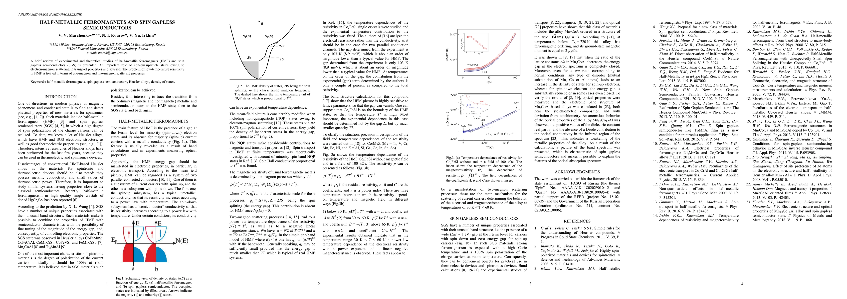 A combination of theoretical calculations and experimental measurements were used to investigate the properties of half-metallic ferromagnets.