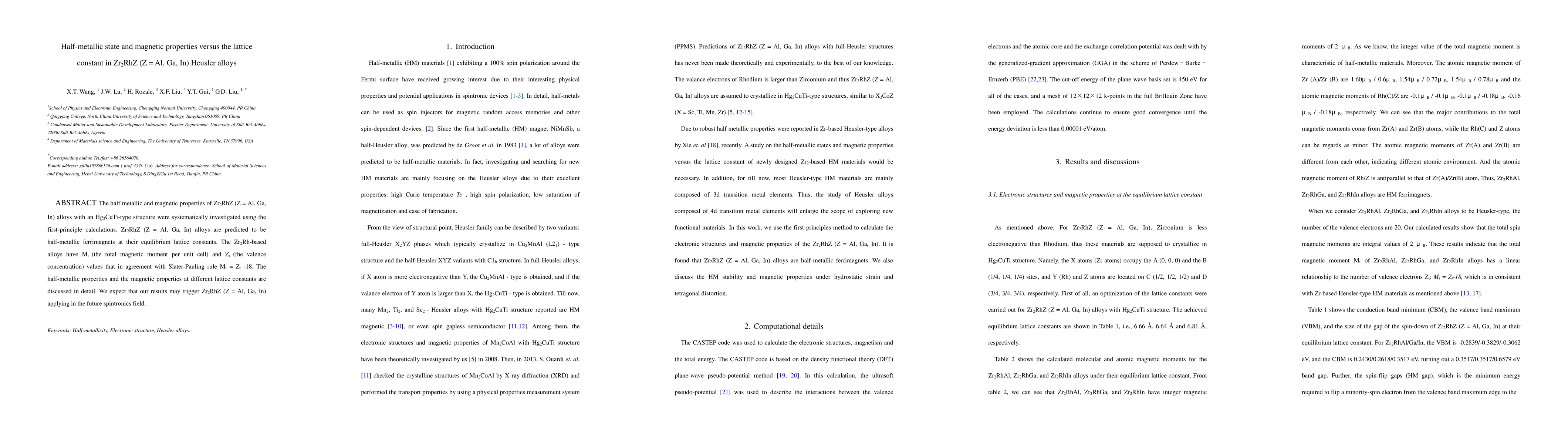 This research investigates the half-metallic and magnetic properties of Zr2RhZ (Z = Al, Ga, In) Heusler alloys using first-principle calculations, predicting they are half-metallic ferrimagnets at equilibrium lattice constants. The study discusses the implications for future spintronics applications.