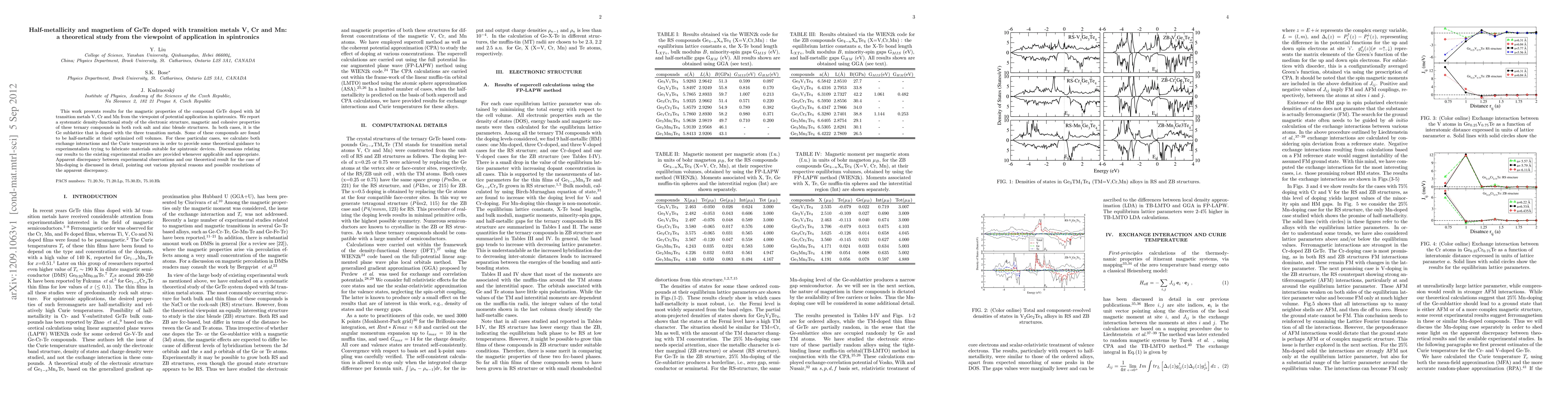 Researchers investigated GeTe doped with transition metals V, Cr, and Mn for spintronics applications, finding some compounds to be half-metallic and providing theoretical guidance on magnetic properties.