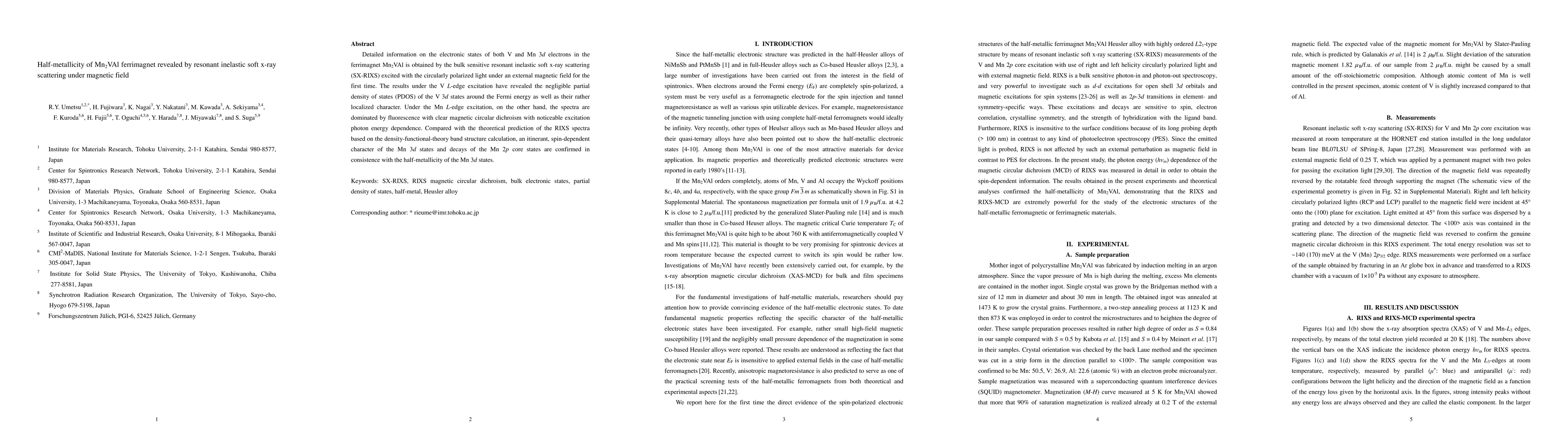 This study reveals the electronic states of Mn2VAl ferrimagnet using resonant inelastic soft x-ray scattering (SX-RIXS) under a magnetic field, showing negligible V 3d states near the Fermi level and itinerant, spin-dependent characteristics of Mn 3d states, confirming half-metallicity.
