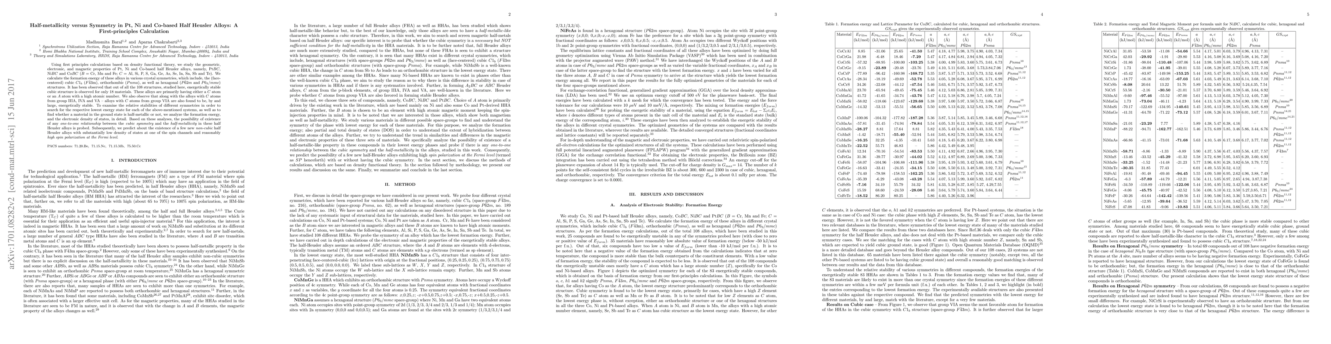 This paper uses first-principles calculations to investigate the geometric, electronic, and magnetic properties of Pt, Ni, and Co-based half Heusler alloys. It finds that only 18 out of 108 studied structures exhibit energetically stable cubic symmetry, and explores the relationship between symmetry and half-metallicity, predicting new non-cubic half Heusler alloys with potential half-metallic properties.