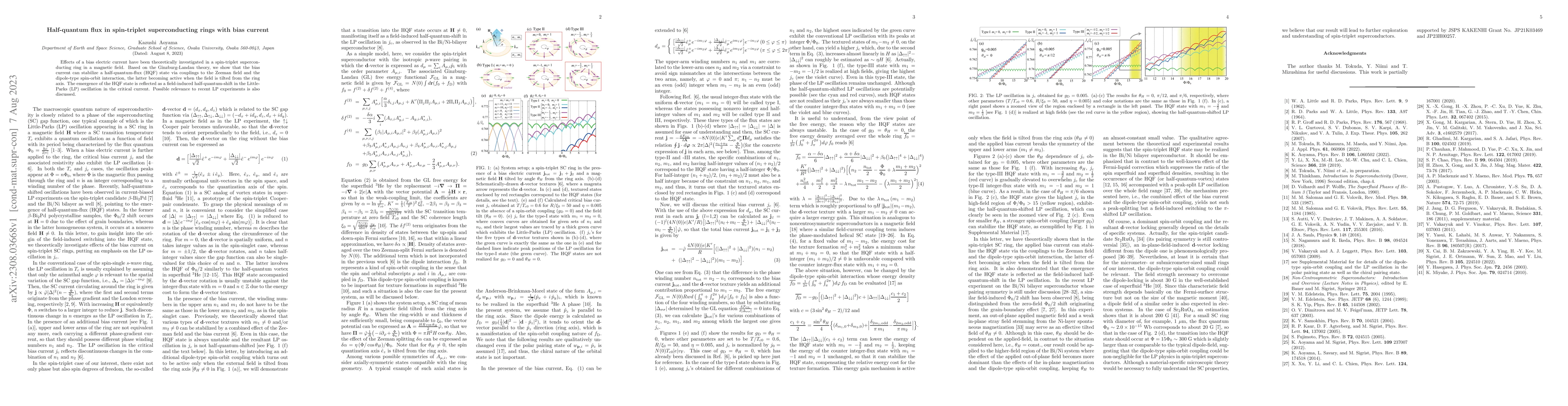 This paper investigates how bias electric current affects spin-triplet superconducting rings in a magnetic field, revealing that it can stabilize a half-quantum-flux state via Zeeman field and dipole-type spin-orbit interaction. The study highlights a field-induced half-quantum-shift in the Little-Parks oscillation critical current, with implications for recent experimental observations.