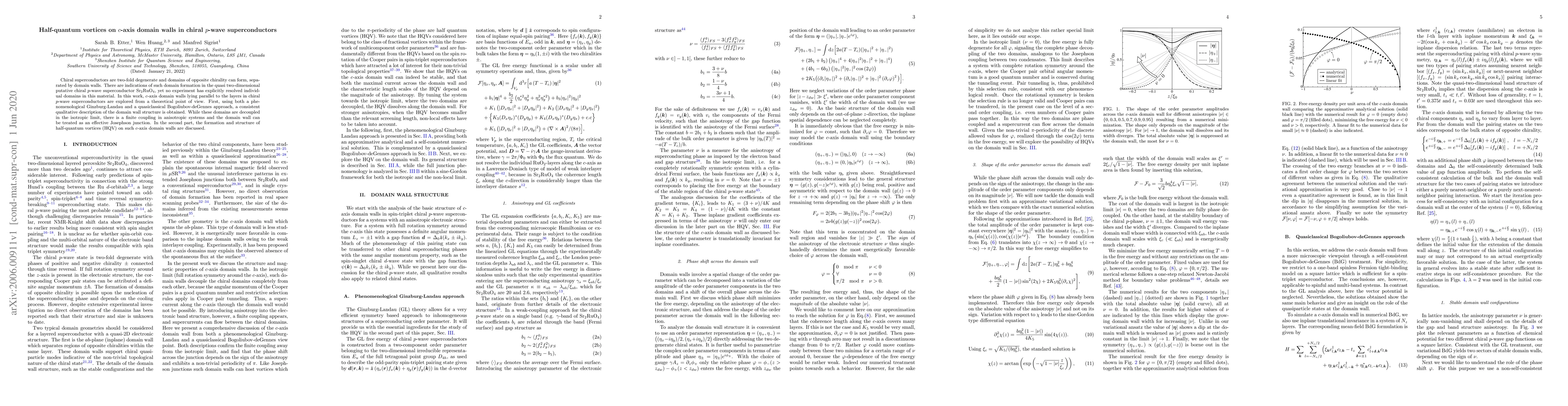 This paper explores $c$-axis domain walls in chiral $p$-wave superconductors, using both Ginzburg-Landau and Bogoliubov-deGennes approaches to describe their structure and coupling. It also investigates the formation of half-quantum vortices on these domain walls, revealing their unique properties.