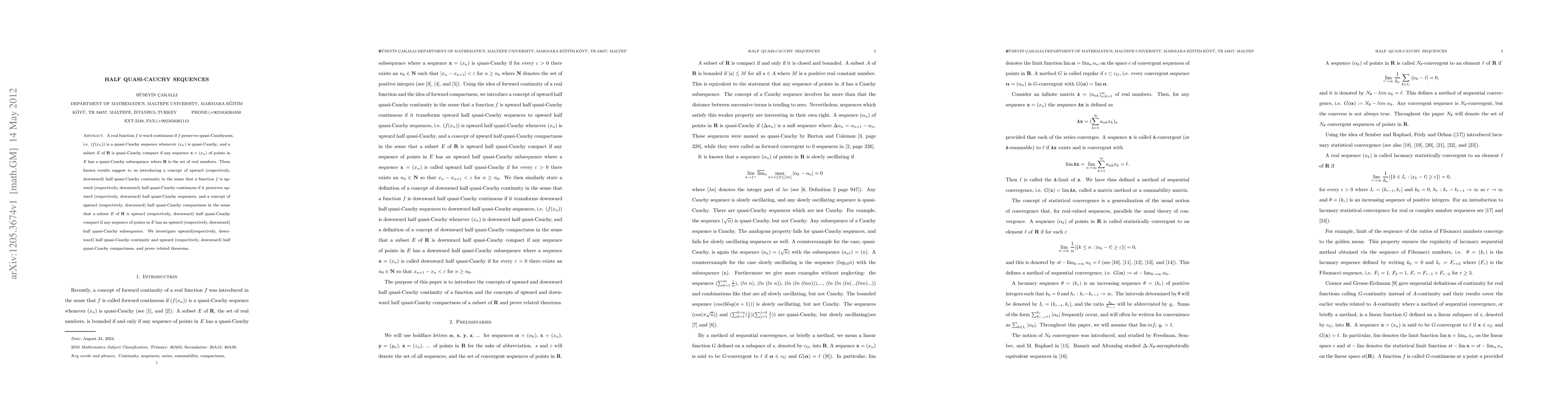 A real function $f$ is ward continuous if $f$ preserves quasi-Cauchyness, i.e. $(f(x_{n}))$ is a quasi-Cauchy sequence whenever $(x_{n})$ is quasi-Cauchy; and a subset $E$ of $\textbf{R}$ is quasi-Cauchy compact if any sequence $\textbf{x}=(x_{n})$ of points in $E$ has a quasi-Cauchy subsequence where $\textbf{R}$ is the set of real numbers. These known results suggest to us introducing a concept of upward (respectively, downward) half quasi-Cauchy continuity in the sense that a function $f$ is upward (respectively, downward) half quasi-Cauchy continuous if it preserves upward (respectively, downward) half quasi-Cauchy sequences, and a concept of upward (respectively, downward) half quasi-Cauchy compactness in the sense that a subset $E$ of $\textbf{R}$ is upward (respectively, downward) half quasi-Cauchy compact if any sequence of points in $E$ has an upward (respectively, downward) half quasi-Cauchy subsequence. We investigate upward(respectively, downward) half quasi-Cauchy continuity and upward (respectively, downward) half quasi-Cauchy compactness, and prove related theorems.
