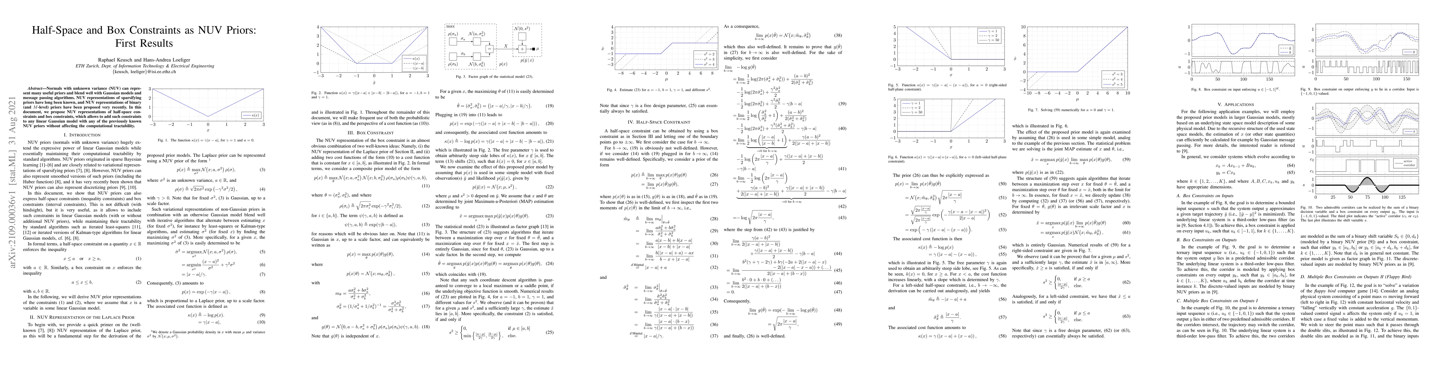 Normals with unknown variance (NUV) can represent many useful priors and blend well with Gaussian models and message passing algorithms. NUV representations of sparsifying priors have long been known, and NUV representations of binary (and M-level) priors have been proposed very recently. In this document, we propose NUV representations of half-space constraints and box constraints, which allows to add such constraints to any linear Gaussian model with any of the previously known NUV priors without affecting the computational tractability.