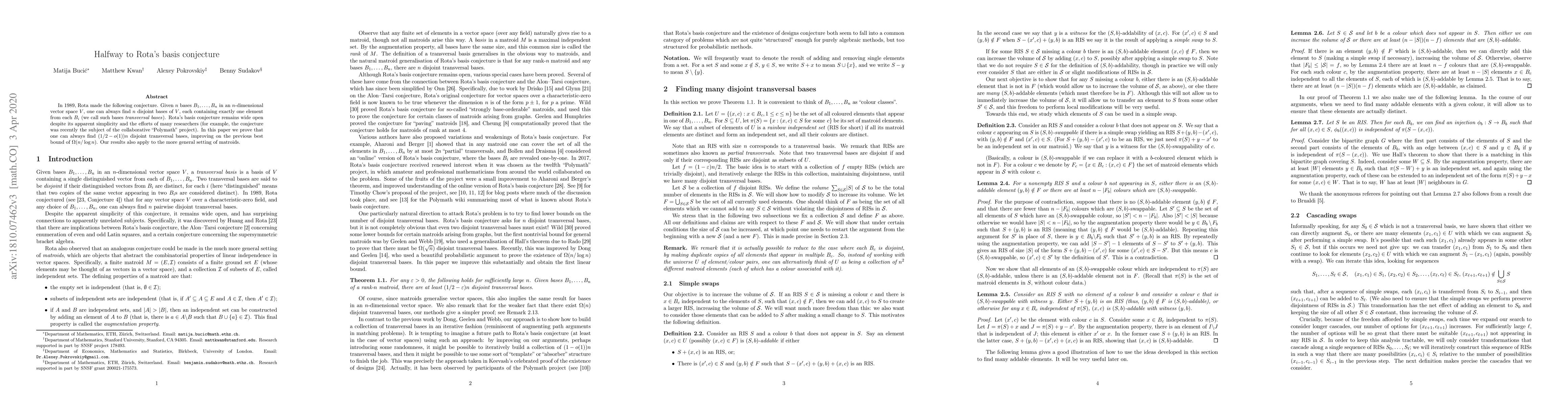 Researchers prove that in an n-dimensional vector space, one can find more than half of n disjoint transversal bases, improving on the previous best bound of n/log(n), bringing them closer to resolving Rota's basis conjecture.