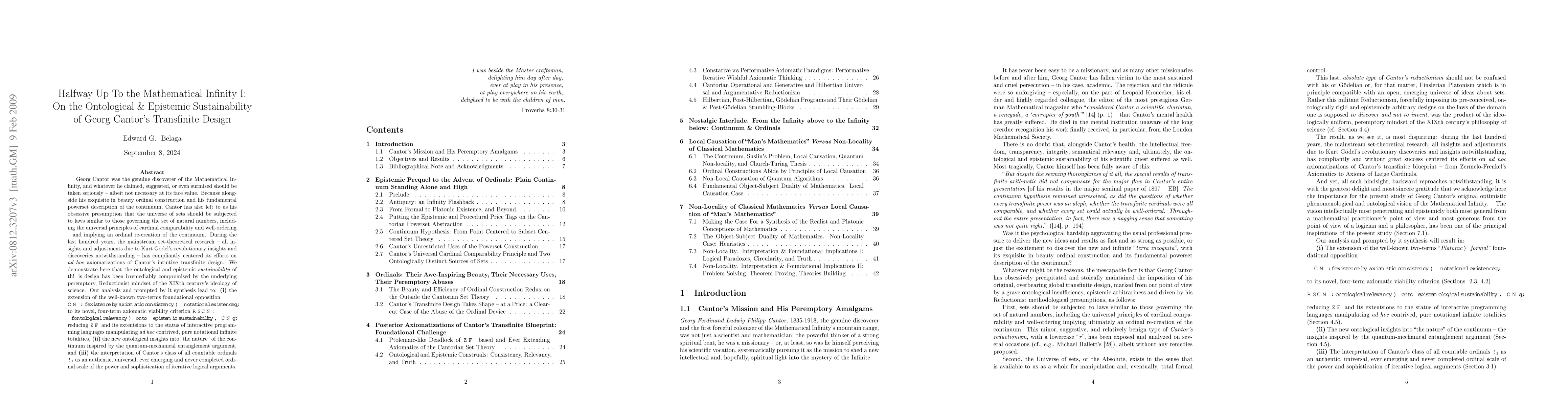 Georg Cantor was the genuine discoverer of the Mathematical Infinity, and whatever he claimed, suggested, or even surmised should be taken seriously -- albeit not necessary at its face value. Because alongside his exquisite in beauty ordinal construction and his fundamental powerset description of the continuum, Cantor has also left to us his obsessive presumption that the universe of sets should be subjected to laws similar to those governing the set of natural numbers, including the universal principles of cardinal comparability and well-ordering -- and implying an ordinal re-creation of the continuum. During the last hundred years, the mainstream set-theoretical research -- all insights and adjustments due to Kurt G\"odel's revolutionary insights and discoveries notwithstanding -- has compliantly centered its efforts on \emph{ad hoc} axiomatizations of Cantor's intuitive transfinite design. We demonstrate here that the ontological and epistemic \emph{sustainability} of this design has been irremediably compromised by the underlying it peremptory, Reductionist mindset of the XIXth century's ideology of science.