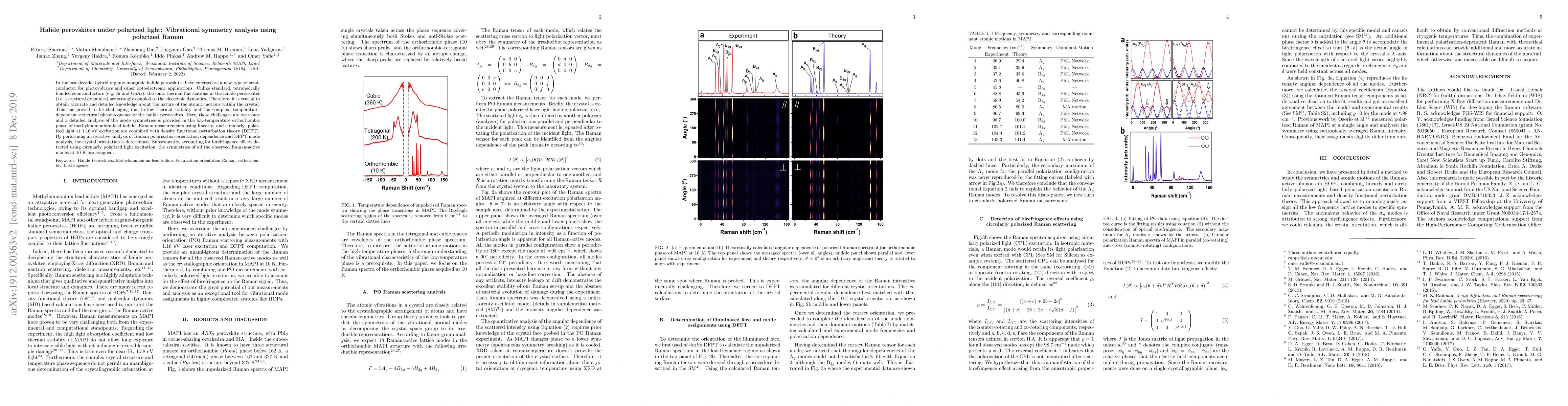 This paper investigates the vibrational symmetries of methylammonium-lead iodide perovskite using polarized Raman spectroscopy and density functional perturbation theory. The study determines the crystal orientation and assigns the symmetries of Raman-active modes in the low-temperature orthorhombic phase, overcoming challenges related to thermal stability and structural complexity.