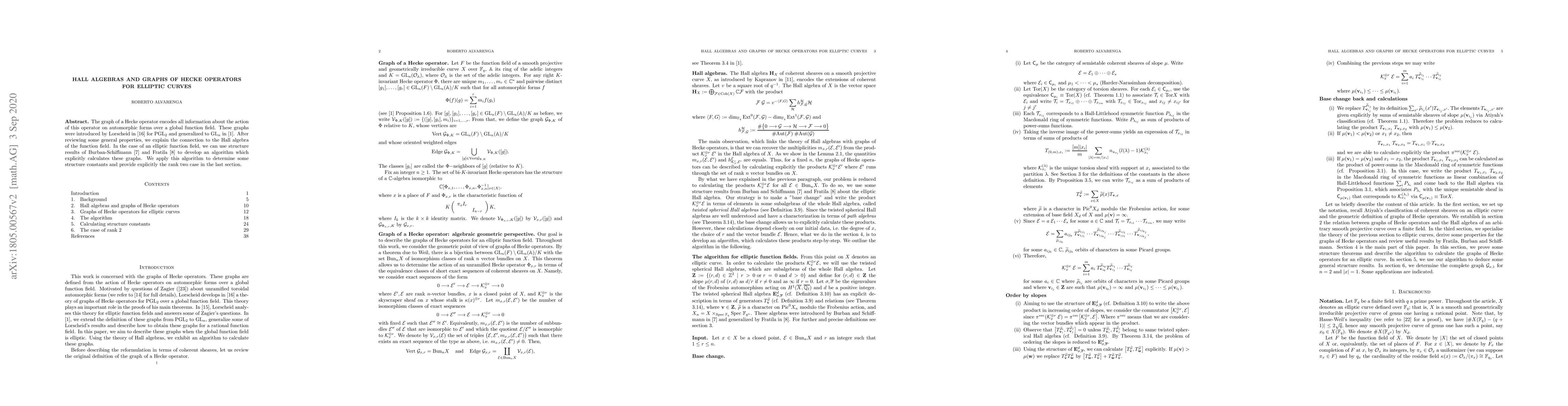 This paper explores the connection between the graphs of Hecke operators and the Hall algebra of a function field, particularly for elliptic curves. The authors develop an algorithm leveraging existing structure results to compute these graphs and apply it to determine specific structure constants, illustrating the rank two case.