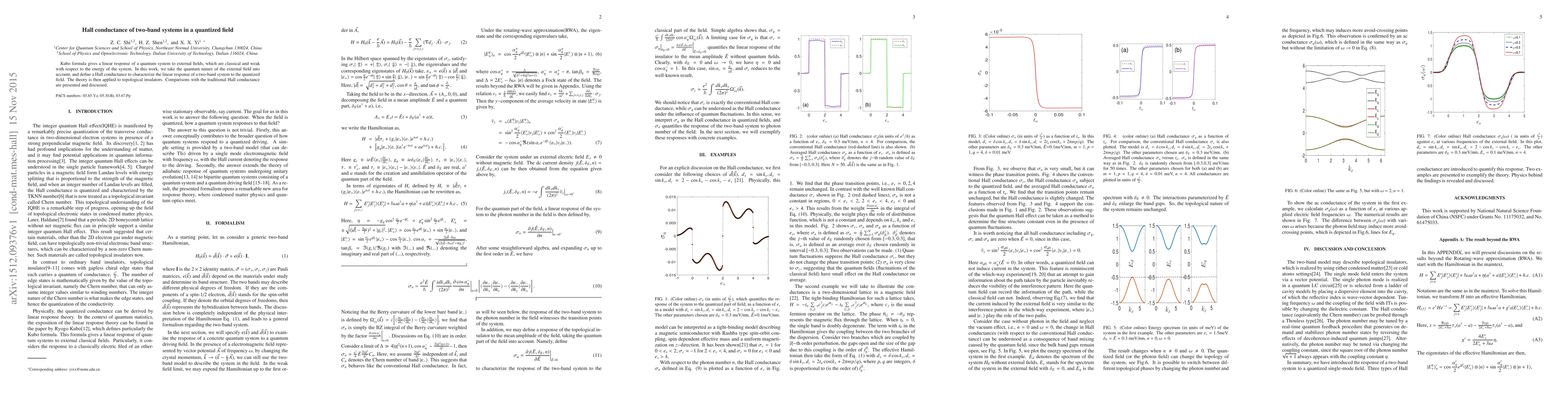 Kubo formula gives a linear response of a quantum system to external fields, which are classical and weak with respect to the energy of the system. In this work, we take the quantum nature of the external field into account, and define a Hall conductance to characterize the linear response of a two-band system to the quantized field. The theory is then applied to topological insulators. Comparisons with the traditional Hall conductance are presented and discussed.