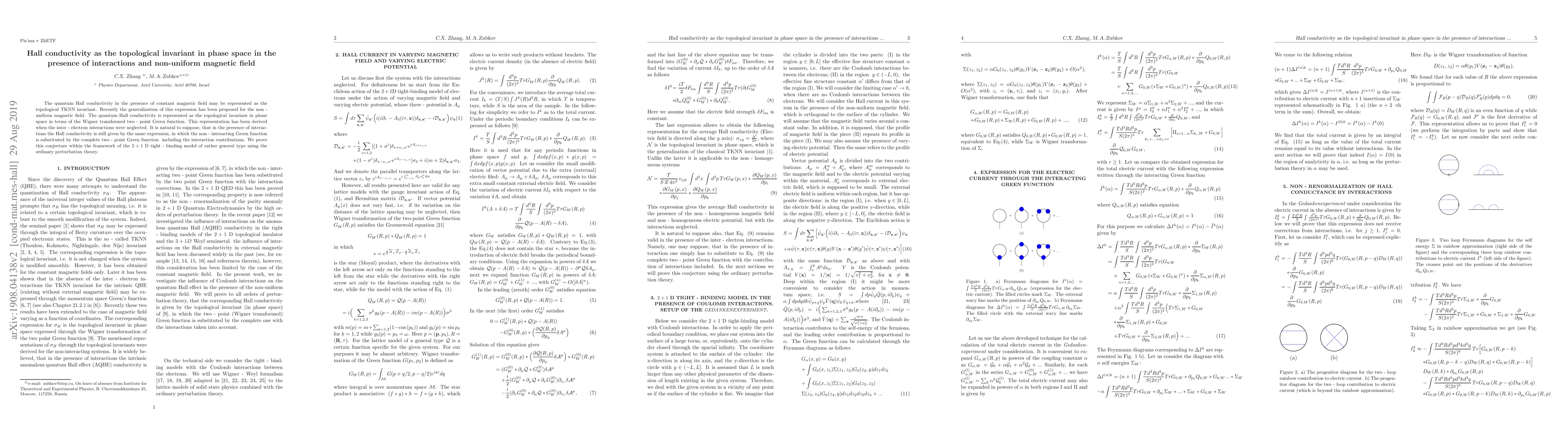 The paper proves that the quantum Hall conductivity remains a topological invariant in phase space even with interactions and non-uniform magnetic fields, represented by the Wigner transformed two-point Green function, extending the TKNN invariant. This is demonstrated using a $2+1$ D tight-binding model and ordinary perturbation theory.