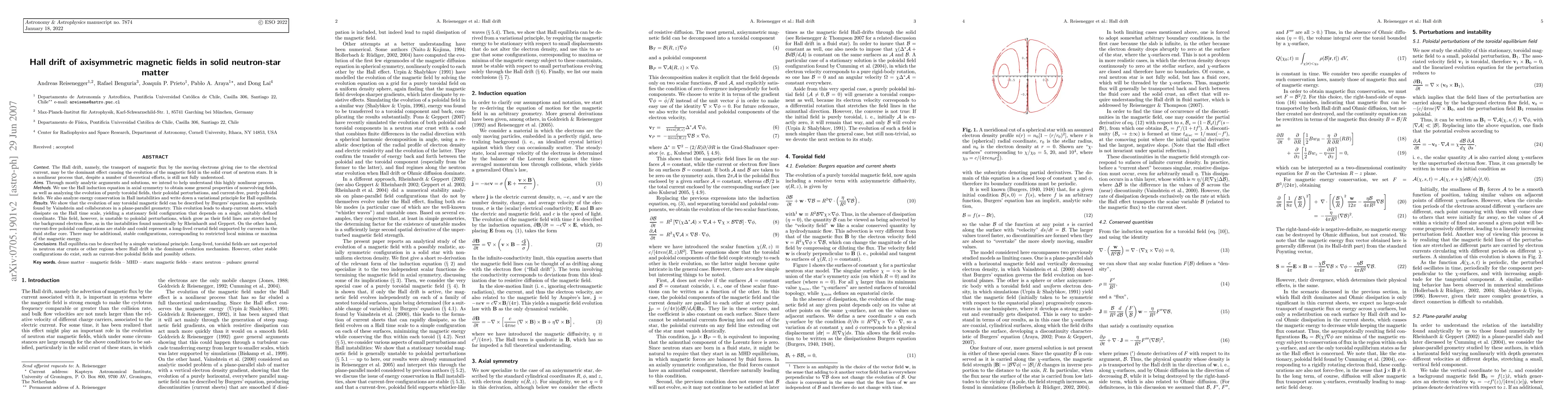 Hall drift, i. e., transport of magnetic flux by the moving electrons giving rise to the electrical current, may be the dominant effect causing the evolution of the magnetic field in the solid crust of neutron stars. It is a nonlinear process that, despite a number of efforts, is still not fully understood. We use the Hall induction equation in axial symmetry to obtain some general properties of nonevolving fields, as well as analyzing the evolution of purely toroidal fields, their poloidal perturbations, and current-free, purely poloidal fields. We also analyze energy conservation in Hall instabilities and write down a variational principle for Hall equilibria. We show that the evolution of any toroidal magnetic field can be described by Burgers' equation, as previously found in plane-parallel geometry. It leads to sharp current sheets that dissipate on the Hall time scale, yielding a stationary field configuration that depends on a single, suitably defined coordinate. This field, however, is unstable to poloidal perturbations, which grow as their field lines are stretched by the background electron flow, as in instabilities earlier found numerically. On the other hand, current-free poloidal configurations are stable and could represent a long-lived crustal field supported by currents in the fluid stellar core.