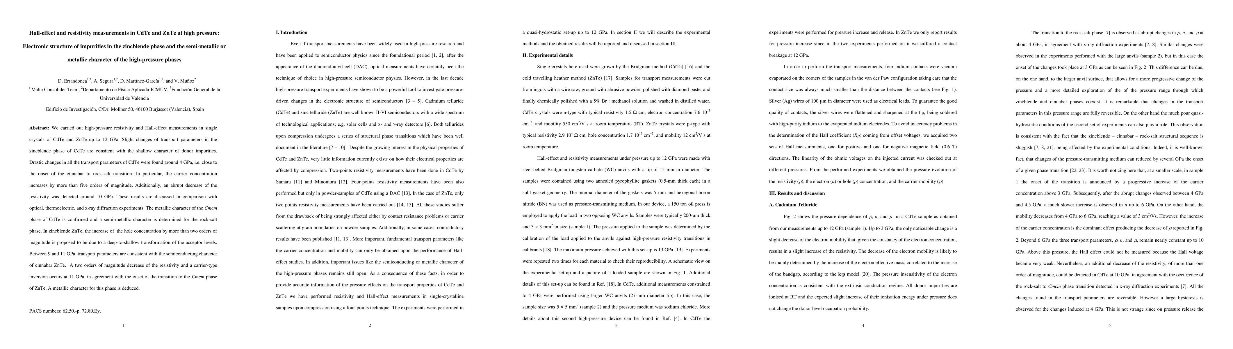 We carried out high-pressure resistivity and Hall-effect measurements in single crystals of CdTe and ZnTe up to 12 GPa. Slight changes of transport parameters in the zincblende phase of CdTe are consitent with the shallow character of donor impurities. Drastic changes in all the transport parameters of CdTe were found around 4 GPa, i.e. close to the onset of the cinnabar to rock-salt transition. In particular, the carrier concentration increases by more than five orders of magnitude. Additionally, an abrupt decrease of the resistivity was detected around 10 GPa. These results are discussed in comparison with optical, thermoelectric, and x-ray diffraction experiments. The metallic character of the Cmcm phase of CdTe is confirmed and a semi-metallic character is determined for the rock-salt phase. In zincblende ZnTe, the increase of the hole concentration by more than two orders of magnitude is proposed to be due to a deep-to-shallow transformation of the acceptor levels. Between 9 and 11 GPa, transport parameters are consistent with the semiconducting character of cinnabar ZnTe. A two orders of magnitude decrease of the resistivity and a carrier-type inversion occurs at 11 GPa, in agreement with the onset of the transition to the Cmcm phase of ZnTe. A metallic character for this phase is deduced.