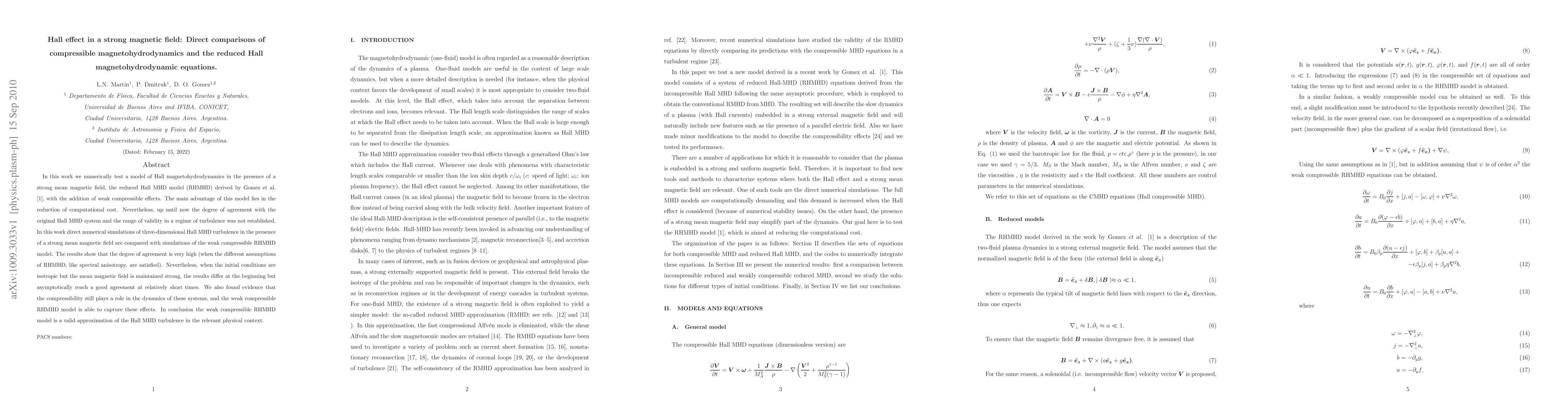 This paper compares the reduced Hall magnetohydrodynamic (RHMHD) model with full Hall magnetohydrodynamic (Hall MHD) simulations in strong magnetic fields, finding high agreement when RHMHD assumptions are met, and demonstrating that the model can capture compressibility effects, thus validating its use as an approximation for Hall MHD turbulence.