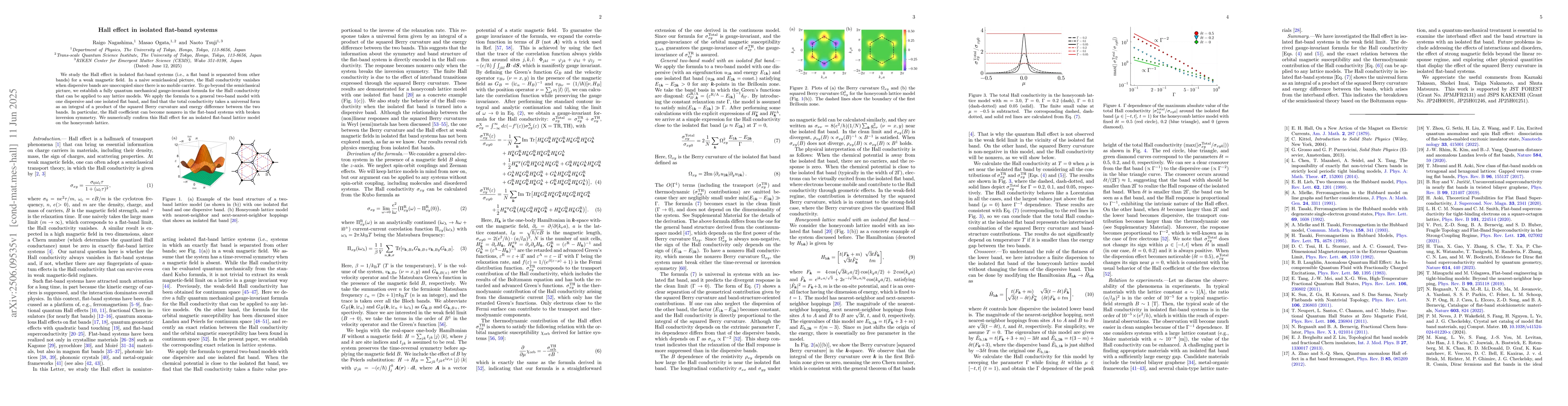 Researchers discovered a universal formula for Hall effect in isolated flat-band systems, showing that even without mobile carriers, the system can exhibit nonzero conductivity due to broken inversion symmetry, which was confirmed through numerical simulations.