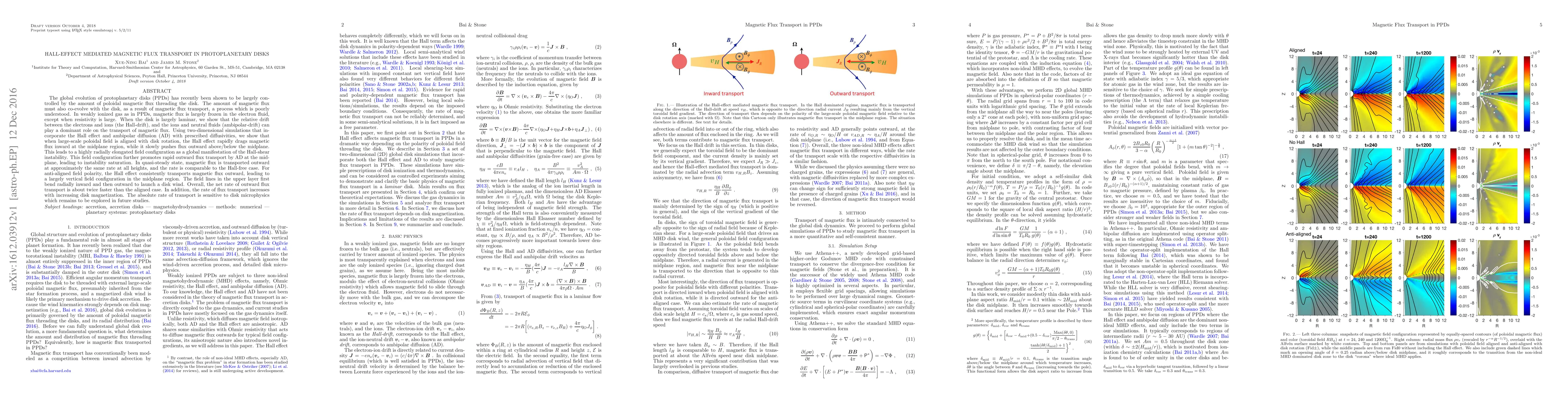 This paper investigates the role of the Hall effect in magnetic flux transport in protoplanetary disks, showing that it significantly influences the configuration and transport of poloidal magnetic fields. The simulations reveal that the Hall effect drives inward flux transport in aligned fields and outward in anti-aligned fields, leading to different global magnetic field configurations and varying rates of flux transport.
