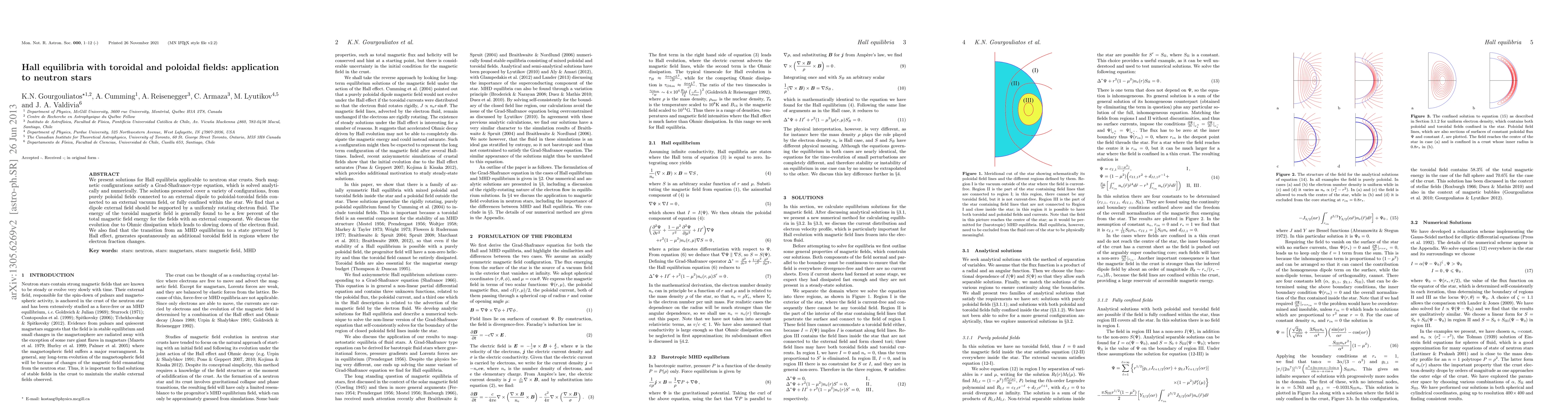 This paper presents analytical and numerical solutions for Hall equilibria in neutron star crusts, exploring various magnetic configurations. It finds that external dipole fields require a uniformly rotating electron fluid and that toroidal fields constitute a small percentage of the total magnetic field energy.