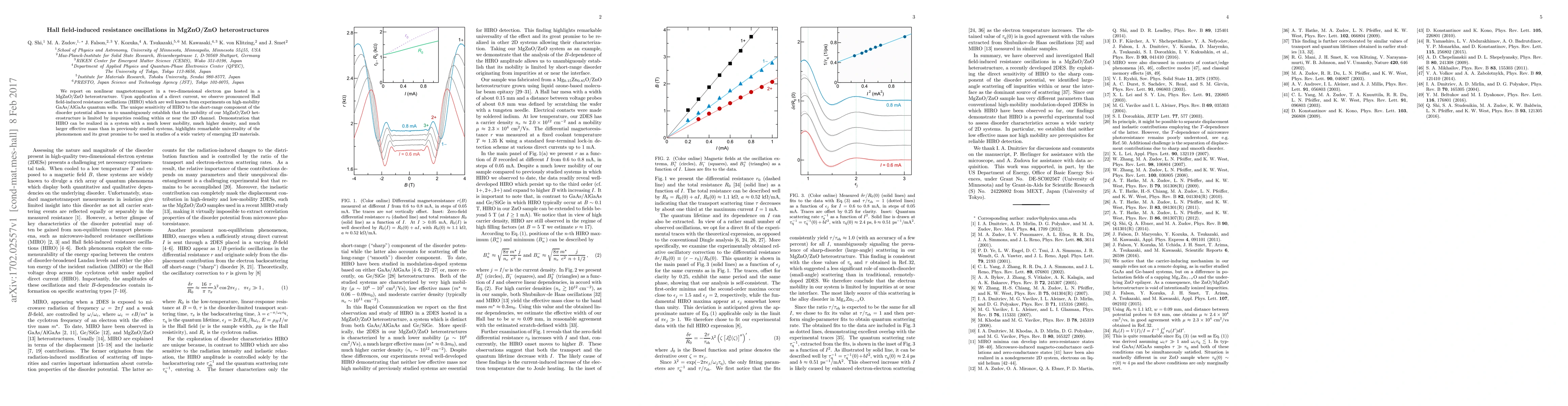 This paper investigates nonlinear magnetotransport in MgZnO/ZnO heterostructures, revealing Hall field-induced resistance oscillations (HIRO) similar to those seen in GaAs/AlGaAs quantum wells. The study demonstrates that HIRO can be used to determine the mobility limitations due to impurities in the 2D channel, highlighting the phenomenon's universality and potential for studying diverse 2D materials.