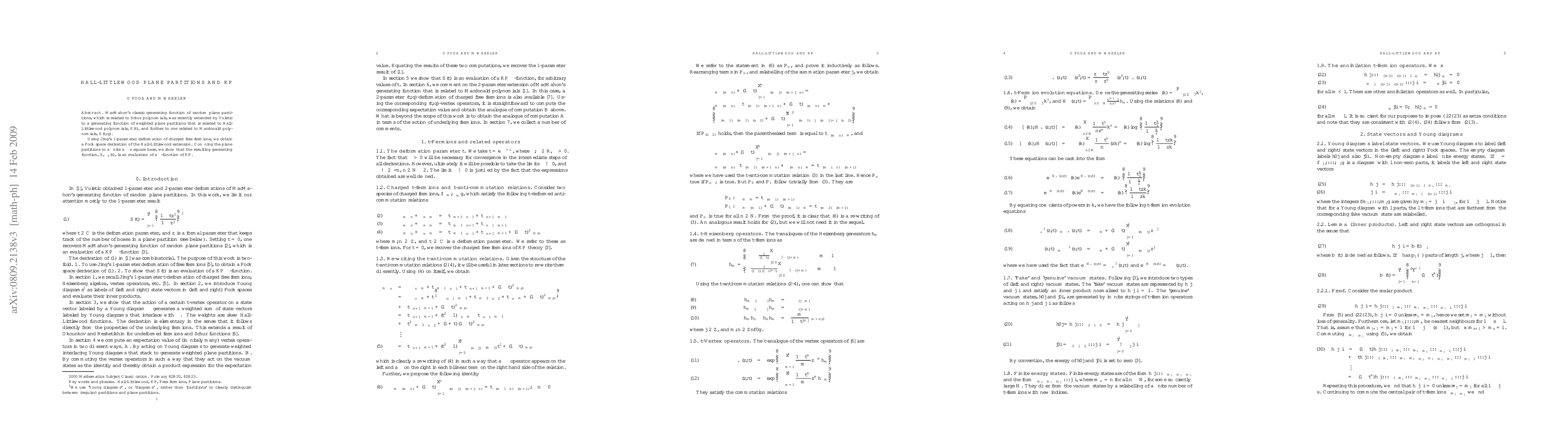 This paper extends MacMahon's generating function for plane partitions to Hall-Littlewood polynomials using a deformation of charged free fermions. It demonstrates that the finite-size generating function for plane partitions corresponds to a tau-function of the Kadomtsev-Petviashvili (KP) equation.