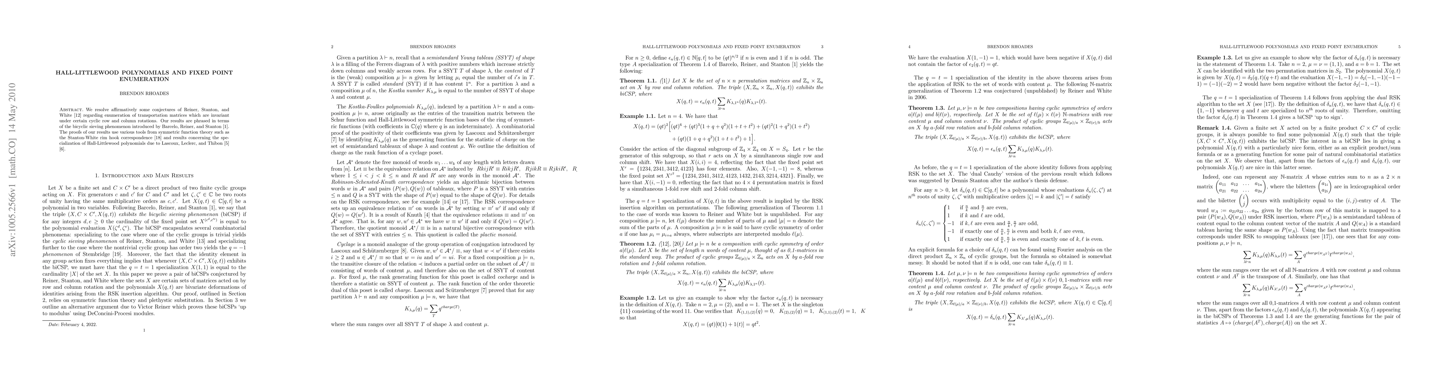 We resolve affirmatively some conjectures of Reiner, Stanton, and White \cite{ReinerComm} regarding enumeration of transportation matrices which are invariant under certain cyclic row and column rotations. Our results are phrased in terms of the bicyclic sieving phenomenon introduced by Barcelo, Reiner, and Stanton \cite{BRSBiD}. The proofs of our results use various tools from symmetric function theory such as the Stanton-White rim hook correspondence \cite{SW} and results concerning the specialization of Hall-Littlewood polynomials due to Lascoux, Leclerc, and Thibon \cite{LLTUnity} \cite{LLTRibbon}.
