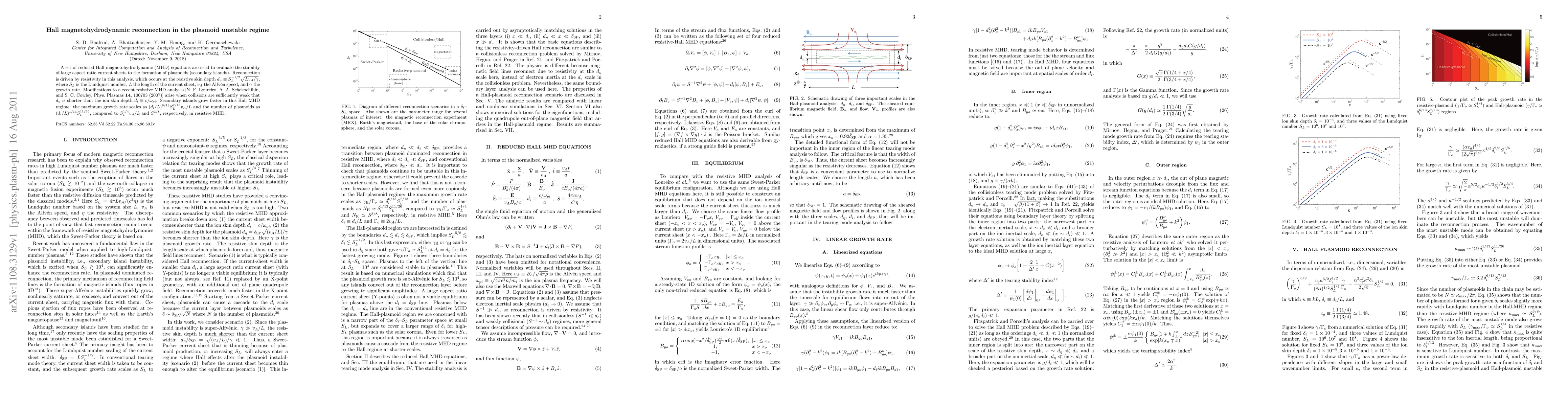 This paper investigates the stability of large aspect ratio current sheets under Hall magnetohydrodynamic (MHD) conditions, focusing on plasmoid formation driven by resistivity. It finds that in the Hall MHD regime, secondary islands grow faster than in resistive MHD, with growth rates and plasmoid numbers scaling differently due to the influence of the resistive skin depth relative to the ion skin depth.
