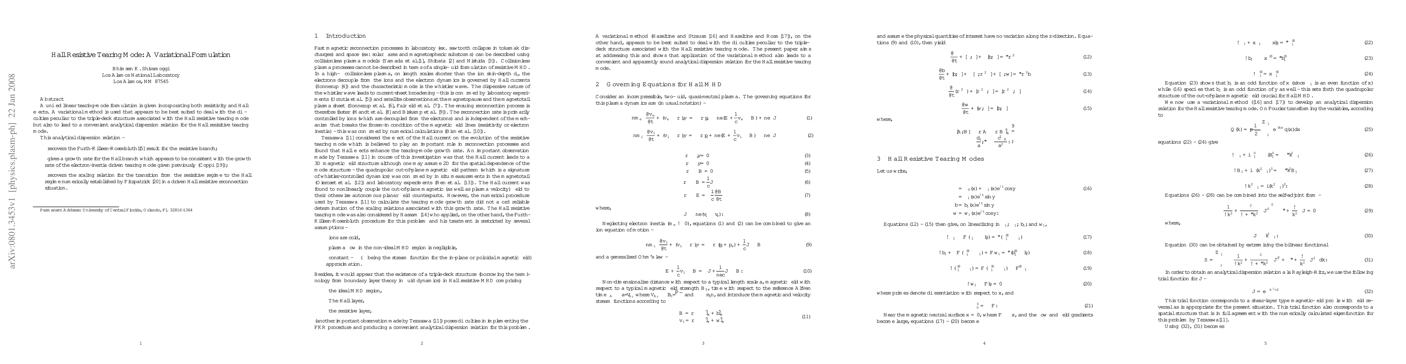 A unified linear tearing-mode formulation is given incorporating both resistivity and Hall effects.