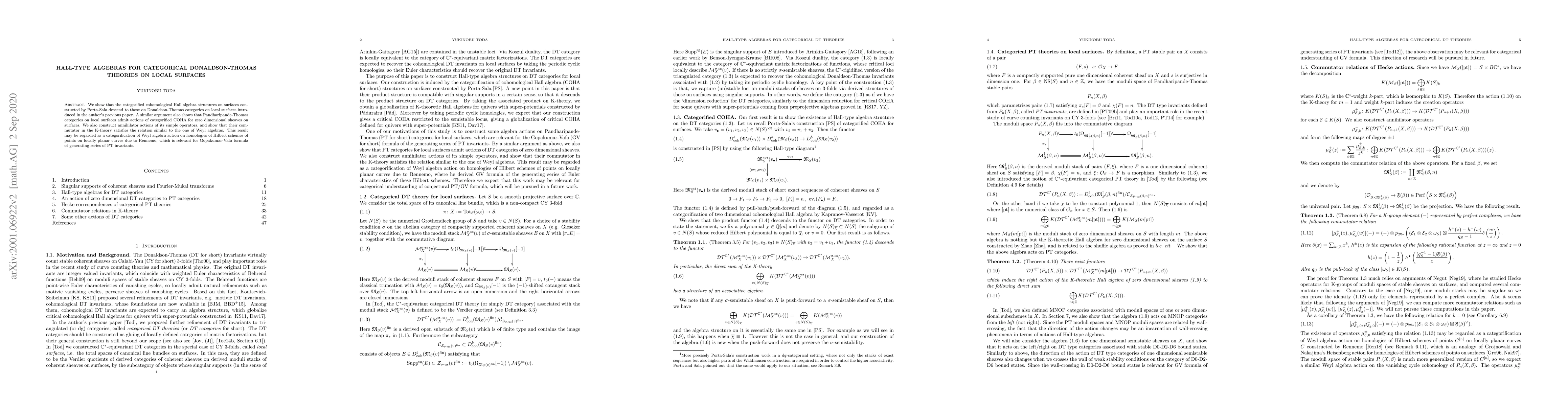 This paper demonstrates that categorified cohomological Hall algebra structures descend to Donaldson-Thomas categories on local surfaces, and constructs annihilator actions of simple operators that exhibit relations similar to those of Weyl algebras, providing a categorification relevant to Gopakumar-Vafa formula.